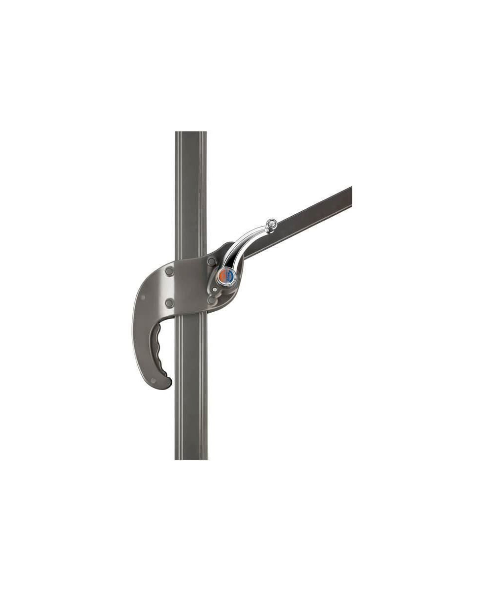 La structure en aluminium/acier revêtu par pulvérisation gris anthracite avec un bâton monobloc (40 x 55 mm) dispose d'une articulation pivotante massive avec pédale.