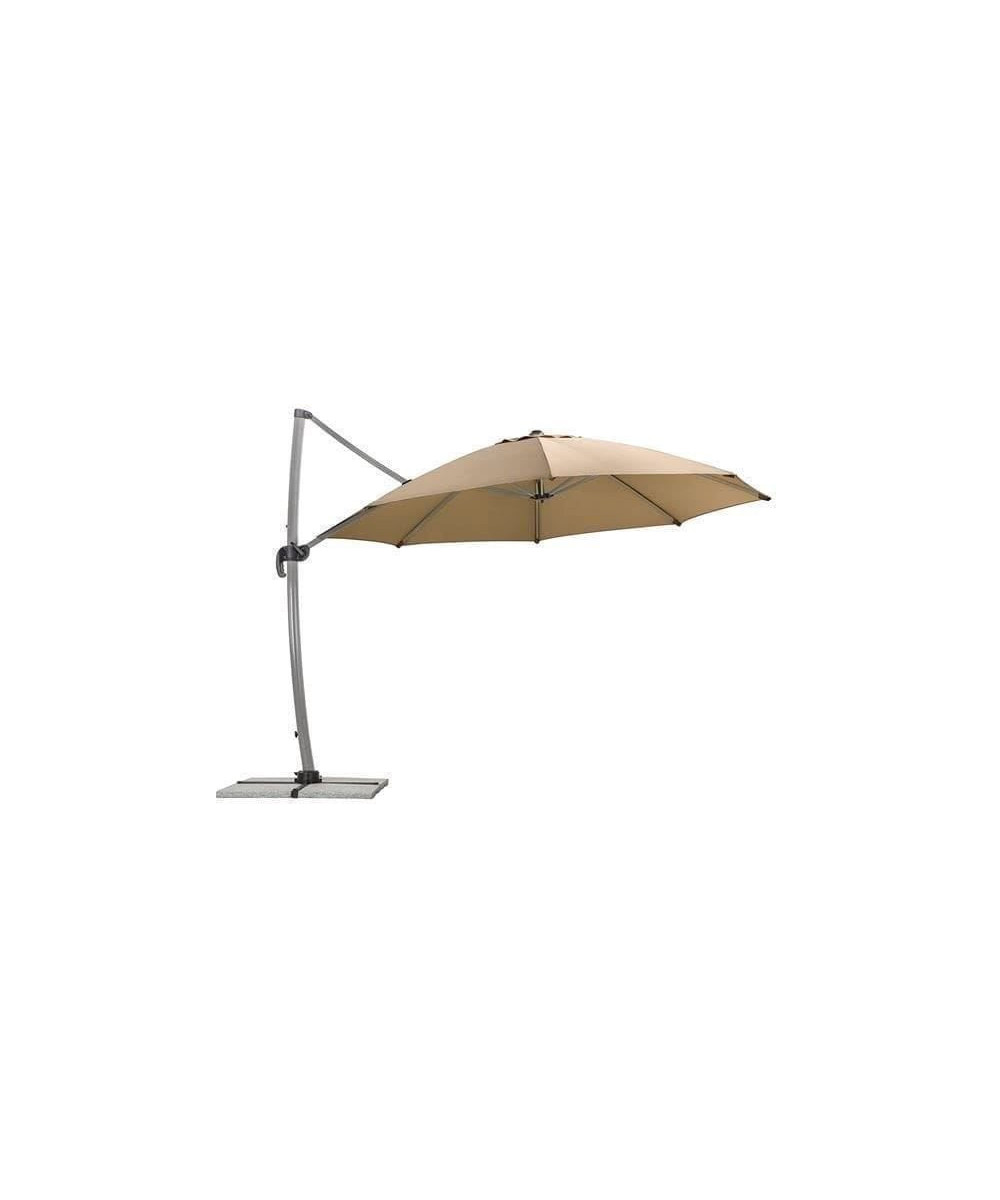 Kühlen Schatten im Angesicht der heißen Sonne spendet Ihnen der Ampel Sonnenschirm "Rhodos Rondo" mit ansprechendem Design. Die Air-Vent-Funktion verhindert ein Umfallen oder eine Beschädigung bei kleineren Windstößen. Für eine hohe Langlebigkeit sorgt das Bespannungsmaterial, welches verrottungsfest und wasserabweisend beschichtet ist. Der Plattenständer sorgt in Kombination mit mindestens 30 kg schweren Wegeplatten für einen sicheren Stand. Wird der Schirm einmal nicht benötigt, so lässt er sich in der lichtundurchlässige Hülle verstauen.
