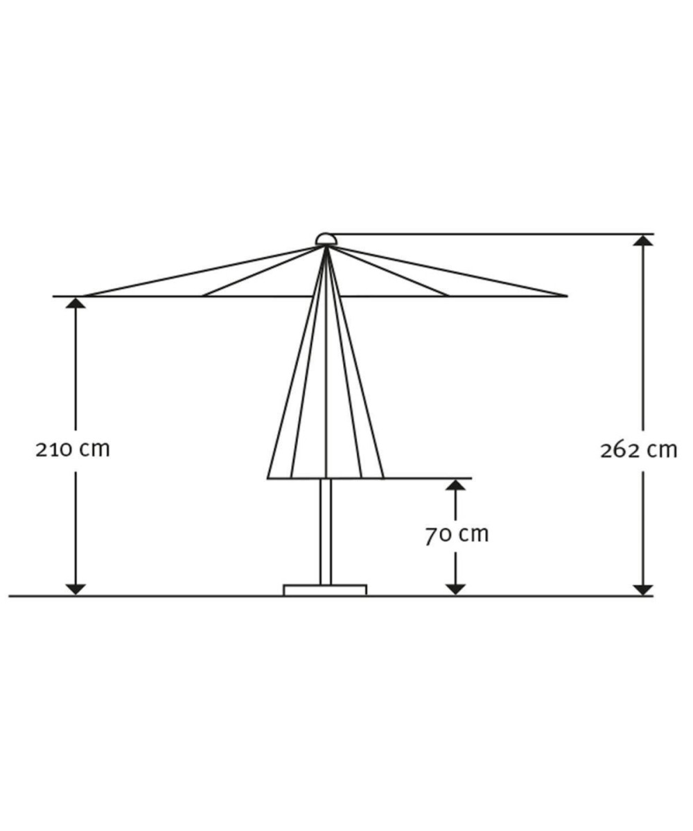 Der Sonnenschirm "Gemini" der Marke Schneider wird im Außenbereich eingesetzt und schirmt vor Sonne und Nieselregen ab. Der Schirm ist wasserabweisend imprägniert und verrottungsfest. Er ist mit einem Volant ausgestattet. Der Schirmständer ist aus robustem, pulverbeschichtetem Aluminium gemacht.