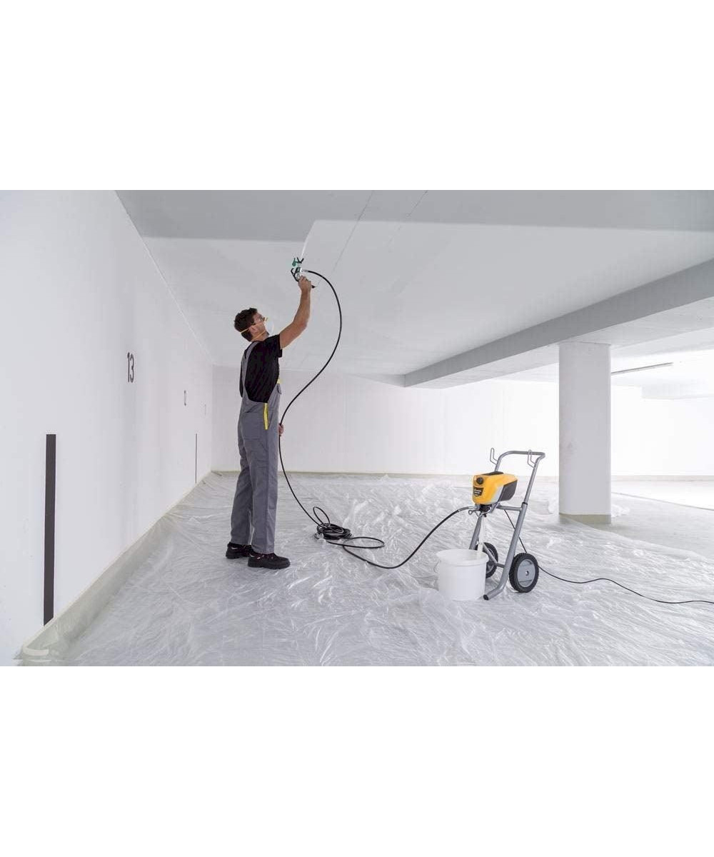 Appareil de pulvérisation puissant et mobile pour tous les travaux de peinture, même sur des grands chantiers, pour les bricoleurs expérimentés, les prestataires de services ainsi que les artisans nécessitant de pulvériser ponctuellement. Équipé de la technologie Airless haute performance (HEA), et donc offrant une pression réduite et une buse innovante, le Control Pro 350 M garantit une application bonment couvrante et sans trace. Toutes les laques, lasures, protections pour bois et peintures à dispersion ou en latex à base aqueuse ou de solvants peuvent être utilisées, et ce avec une réduction de 55 % du brouillard de pulvérisation par rapport à la pulvérisation Airless classique. Un grand confort d'utilisation est garanti par le pistolet Airless de grande qualité et sa gâchette à deux doigts, et avec le tuyau bon souple de 15 mètres de long. Le chariot avec sa poignée télescopique est peu encombrant et facilite donc le transport et le stockage, et permet aussi de changer facilement de lieu de travail.