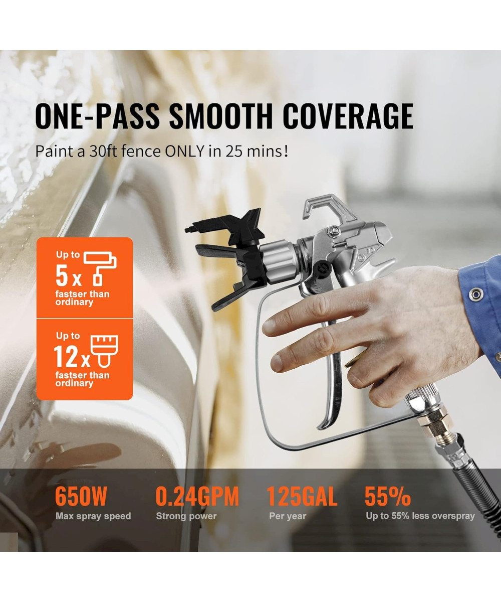 Gagnez du Temps : Vous en avez assez de manquer de temps ? Notre moteur 7/8 HP 650 W est conçu pour un travail plus efficace qui pulvérise plus rapidement qu'un rouleau ou une brosse et fait gagner beaucoup de temps aux bricoleurs. Avec une utilisation annuelle recommandée de 125 gal/an et une vitesse maximale de 1,1 L/min, cette machine offre une pulvérisation plus douce tout en visant une finition plus homogène.