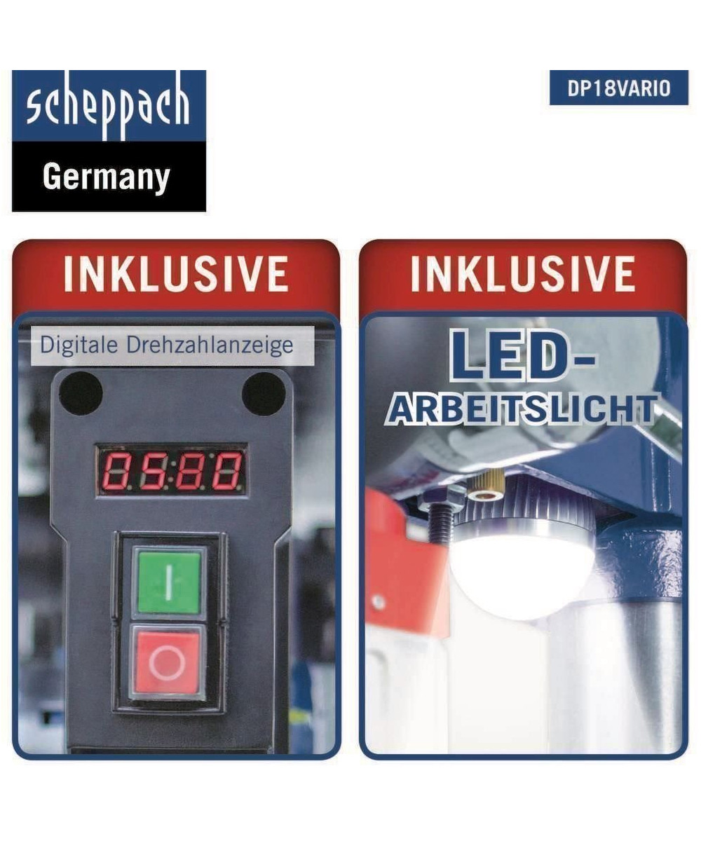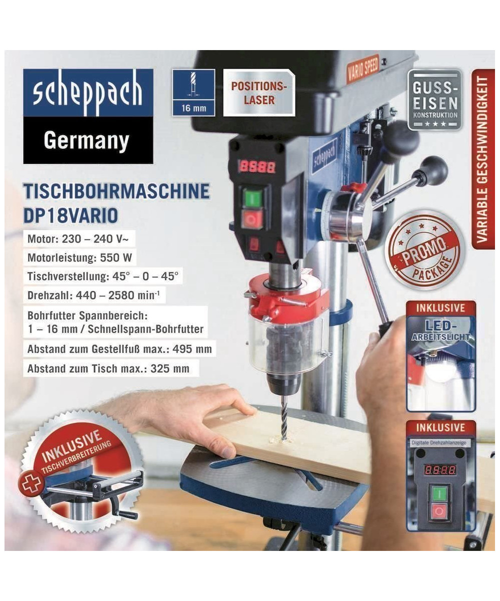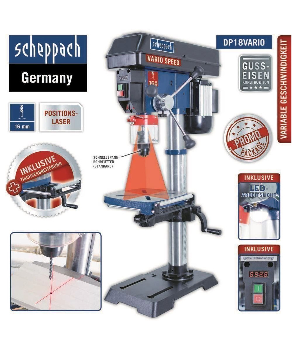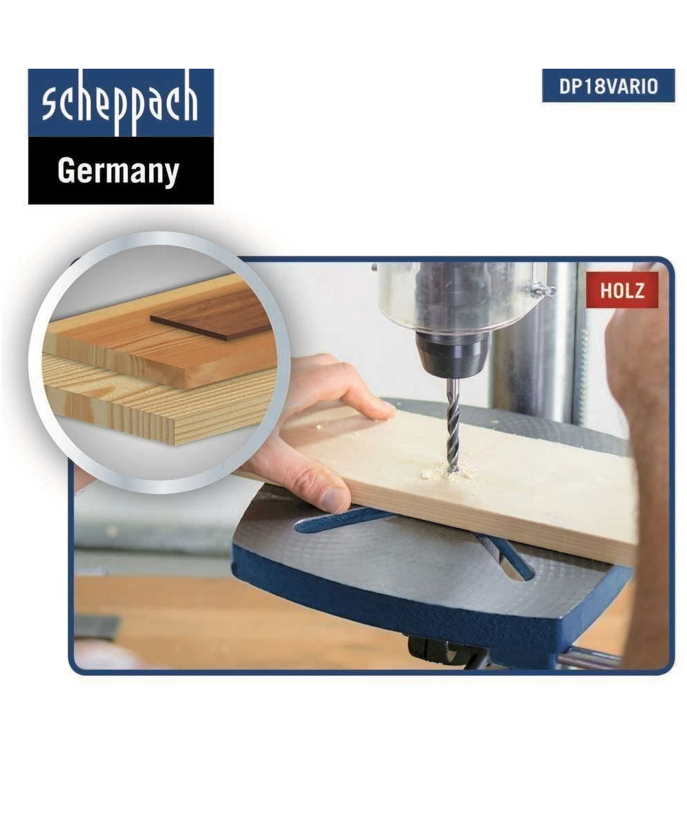 - La perceuse à colonne Scheppach DP18Vario à vitesse variable va vous apporter la précision que vous attendez pour réaliser tous vos travaux de perçage.