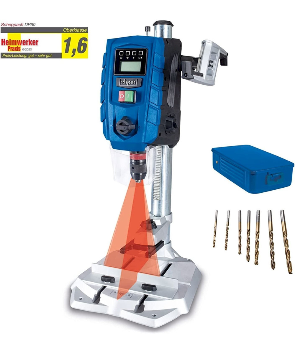 La perceuse d'établi DP60 de Scheppach combine une longue expérience avec un design innovant. Il offre des résultats de perçage précis et peut être utilisé de manière intuitive via l'écran numérique. Le puissant moteur de 710 W a deux vitesses et peut être réglé en continu. Une perceuse d'établi pour tous les artisans qui apprécient une technique fiable. Celui qui accorde de l'importance aux travaux particulièrement précis dans l'atelier domestique utilise une perceuse à établi. En effet, contrairement à la perceuse à main, la perceuse à colonne est fermement fixée, de sorte qu'elle ne peut plus glisser. Cela permet des trous précis avec un minimum d'effort. Même les grands projets peuvent être facilement réalisés.