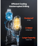 Sécurité et durabilité : votre sécurité passe avant tout. C'est pourquoi les fonctions combinées de protection contre les surcharges sont en place. Le système de refroidissement présente une dissipation rapide de la chaleur pour protéger les opérateurs contre les blessures causées par une surpuissance instantanée et des températures élevées pendant le perçage. De plus, le rail de guidage en alliage de qualité supérieure présente des caractéristiques anticorrosion et de résistance à l'usure