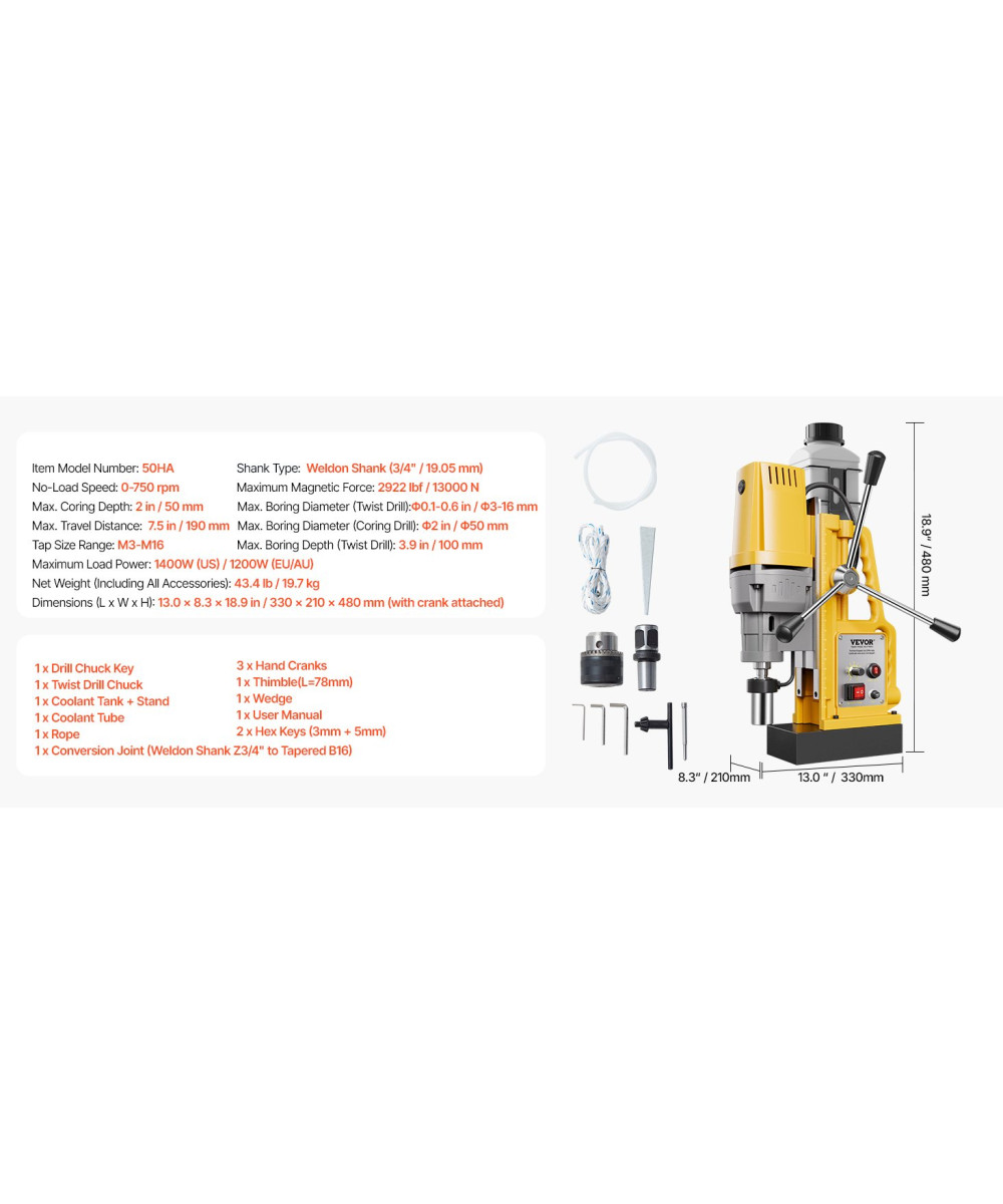 VEVOR perceuse magnétique - perceuse à colonne 1400W ∅50mm 13000N