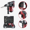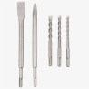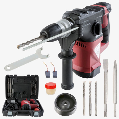 - Livraison : 1x perforateur, 3x SDS mandrins, 2x burins, 1x graisse, 1x clé plate, 1x écarteurs, 2x balais de charbon, 1x mallette de rangement, 1x mode d’emploi