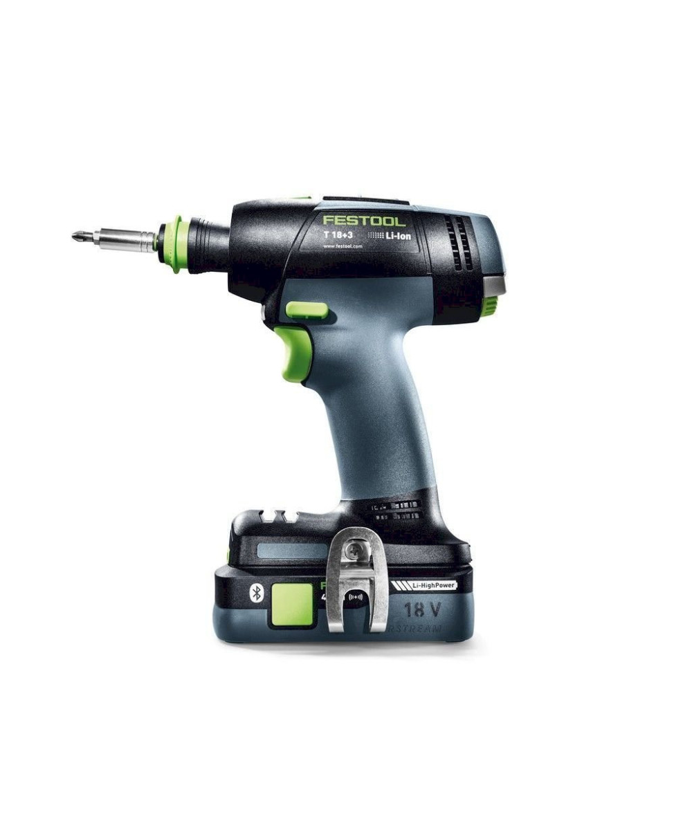 Pour une entière flexibilité lors du perçage et du vissage : le réglage du couple entièrement électronique, le système de changement rapide CENTROTEC, le renvoi d'angle, le module excentrique et la butée de profondeur conviennent à toutes les applications de perçage et de vissage. Grâce à la combinaison d'une batterie Li-HighPower et d'un moteur EC-TEC sans charbons, et donc sans maintenance, la perceuse-visseuse sans fil T 18+3 combine légèreté, longévité et endurance. Et pour plus de sérénité au quotidien, les prestations Festool Service offrent une couverture complète pour la visseuse sans fil et la batterie. Disponible en version à forme T ou, selon les préférences personnelles, en version C 18 ou à forme en C unique.