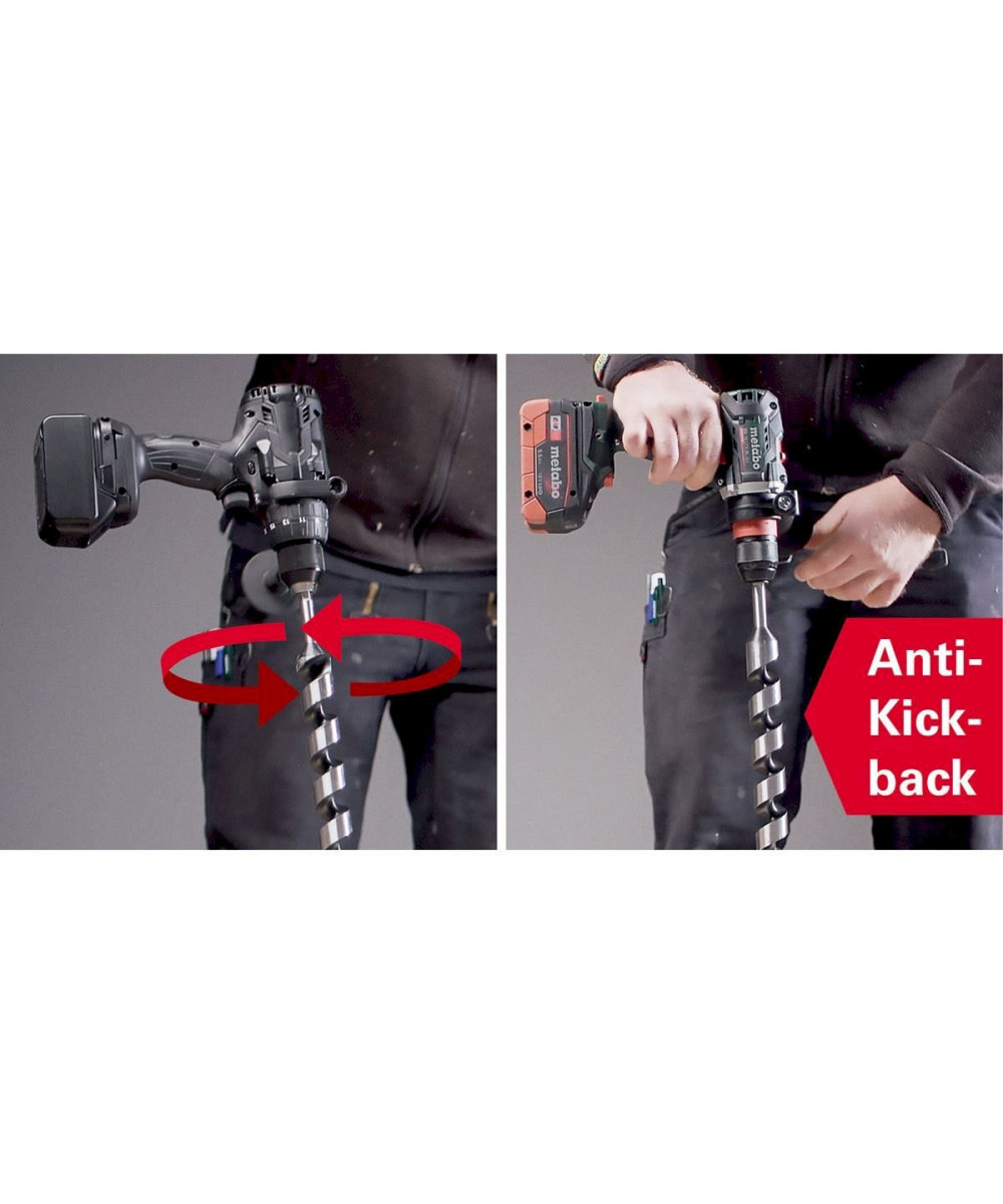 - Arrêt électronique de sécurité : pas de retour de couple en cas de blocage du foret - pour une protection de l'utilisateur élevée
