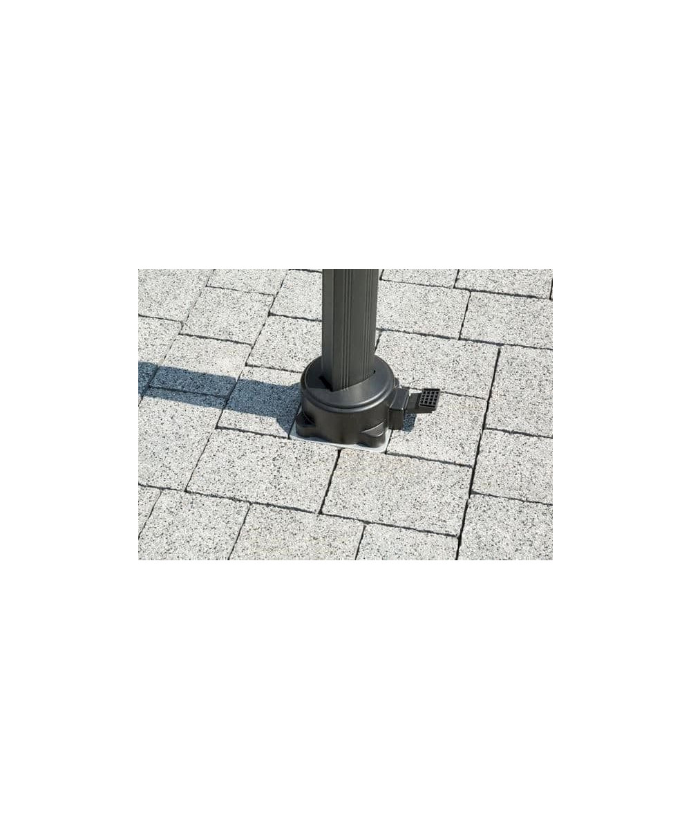 So trotzt Ihr Sonnenschirm Wind und Wetter! Die Bodenplatte zum Einbetonieren dient als Ergänzung für die Plattenständer von Ampelschirmen. Mit einer verzinkten Montagenplatte von ca. 16/16 cm. Gesamthöhe ca. 45 cm.