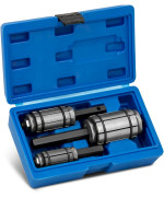 Ce jeu contient 3 évaseurs de tuyau différents : Ø 30 à 44 mm, Ø 38 à 61 mm, Ø 55 à 85 mm. Cette panoplie vous permet donc de travailler sur des tuyaux d'un diamètre allant de 30 à 85 mm. -+Il vous suffit de choisir l'évaseur adapté et de l'enfiler sur le pot d'échappement chaud. Vous pouvez ensuite élargir le tuyau en tournant la tige. L'évaseur se dilate alors dans toutes les directions et élargit le tuyau sans bosse et sans entaille. Si des bosses existent déjà, elles seront corrigées automatiquement lors de l'élargissement. L'ancien pot d'échappement est maintenant prêt pour un nouvel accessoire.