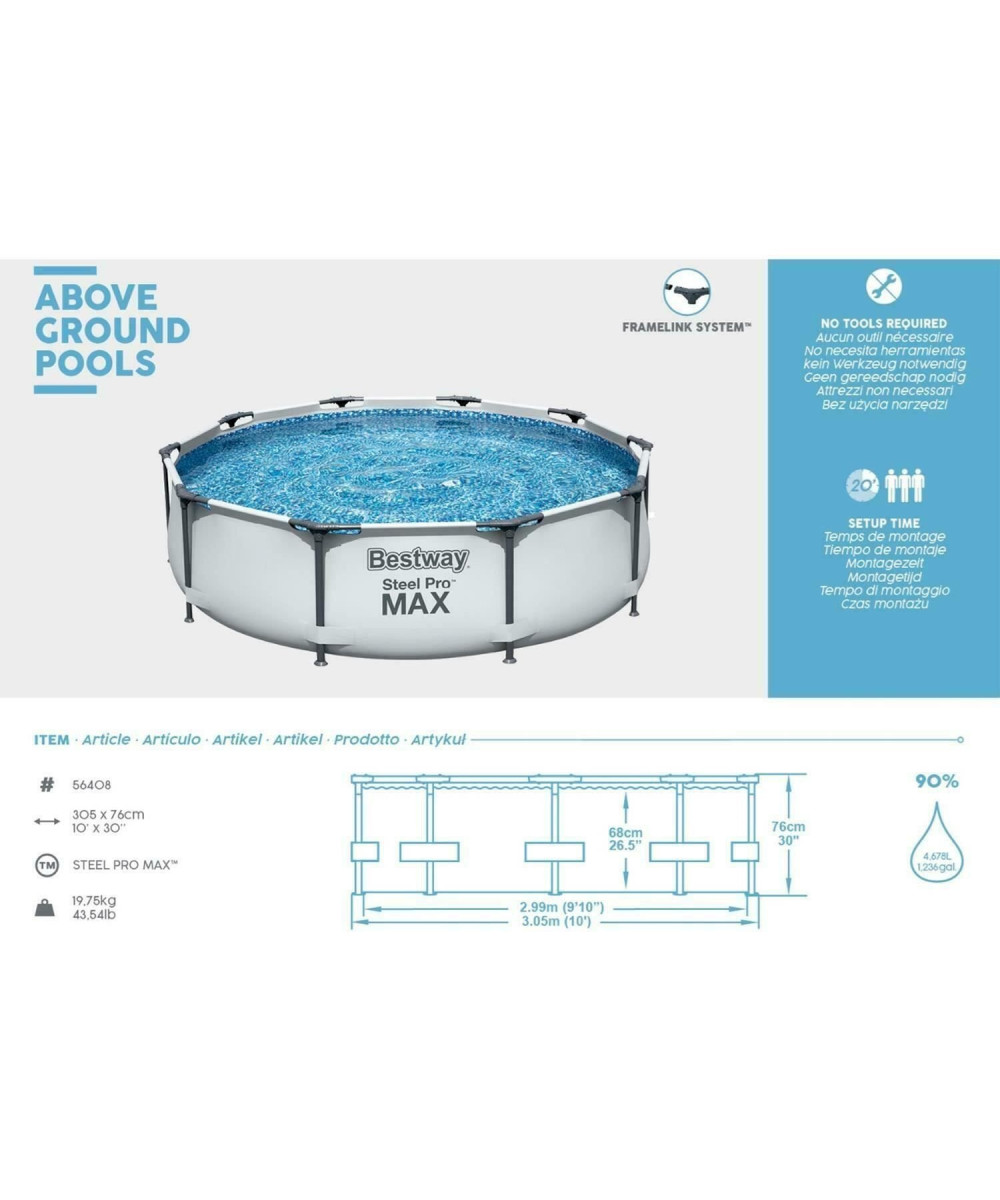 Hauteur D'eau 61 Cm · Piscine Hors-sol · Bestway Steel Pro MAX · 4 678 L · Hauteur Totale 76 Cm · Diamètre 305 Cm