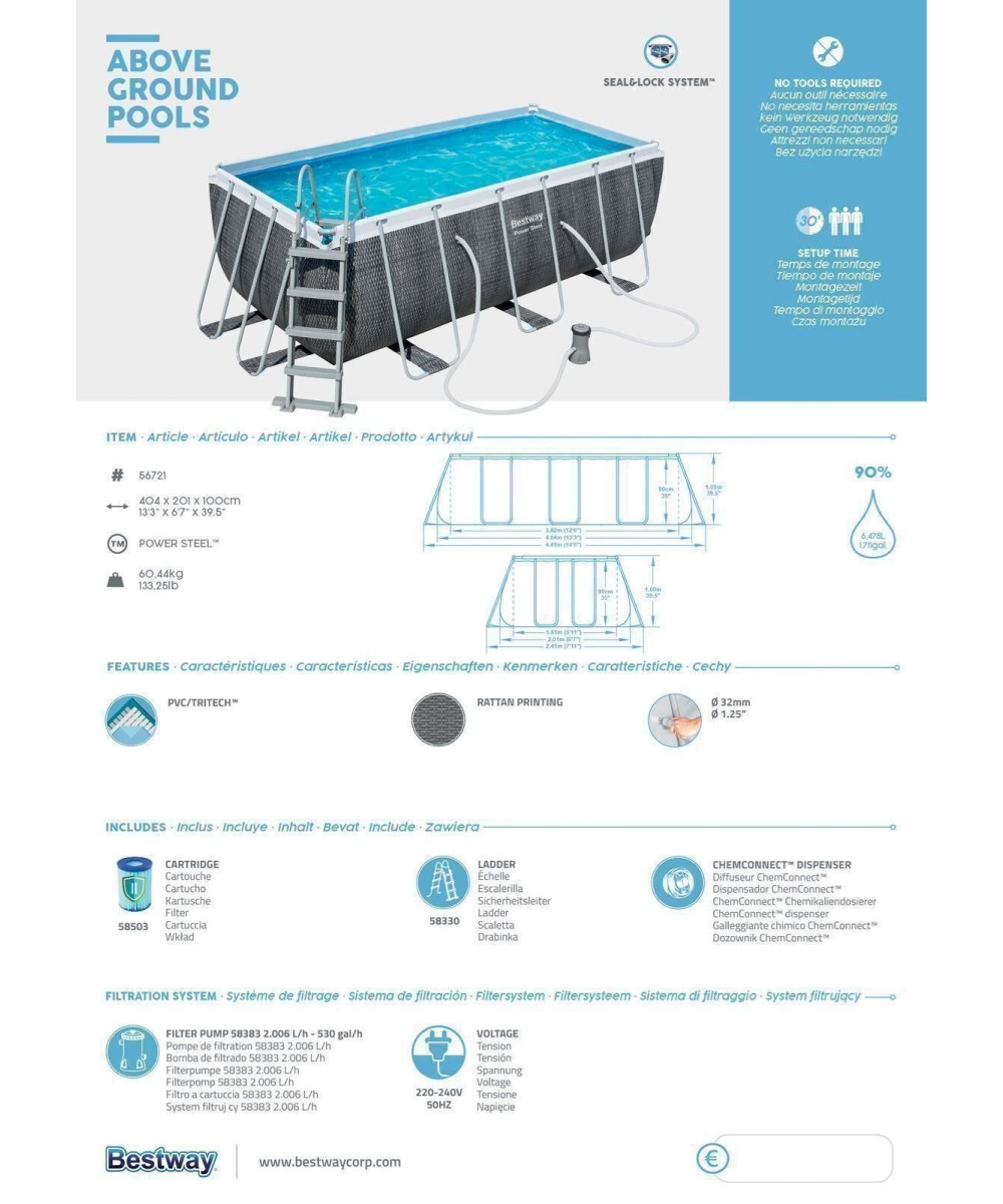 BESTWAY Piscine réctangulaire Steel Frame Pool - 404 x 201 x 100 cm - Tressé