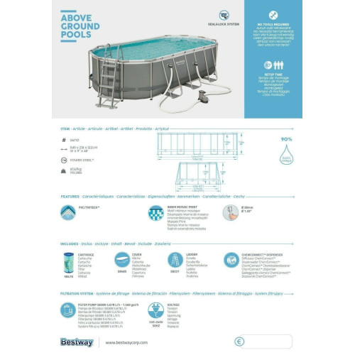 B estway Power Steel Frame Pool, Komplett-Set, oval, 549x274x122cm, inkl. Pompe à filtre 5678 l/h