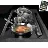 - Das hochwertige Glas-Keramik-Kochfeld mit Induktion kann per HESTAN CUE-App mit passenden Kochgeschirr genutzt werden