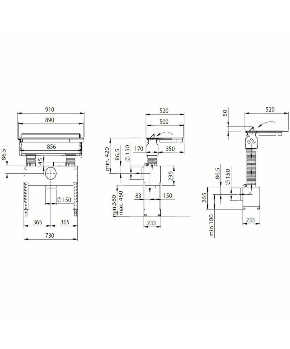 - Das freistehende Kochfeld ist mit einem kompakten Umluft-Modul mit Absaugleiste ausgestattet, so sind Schubladenauszüge möglich