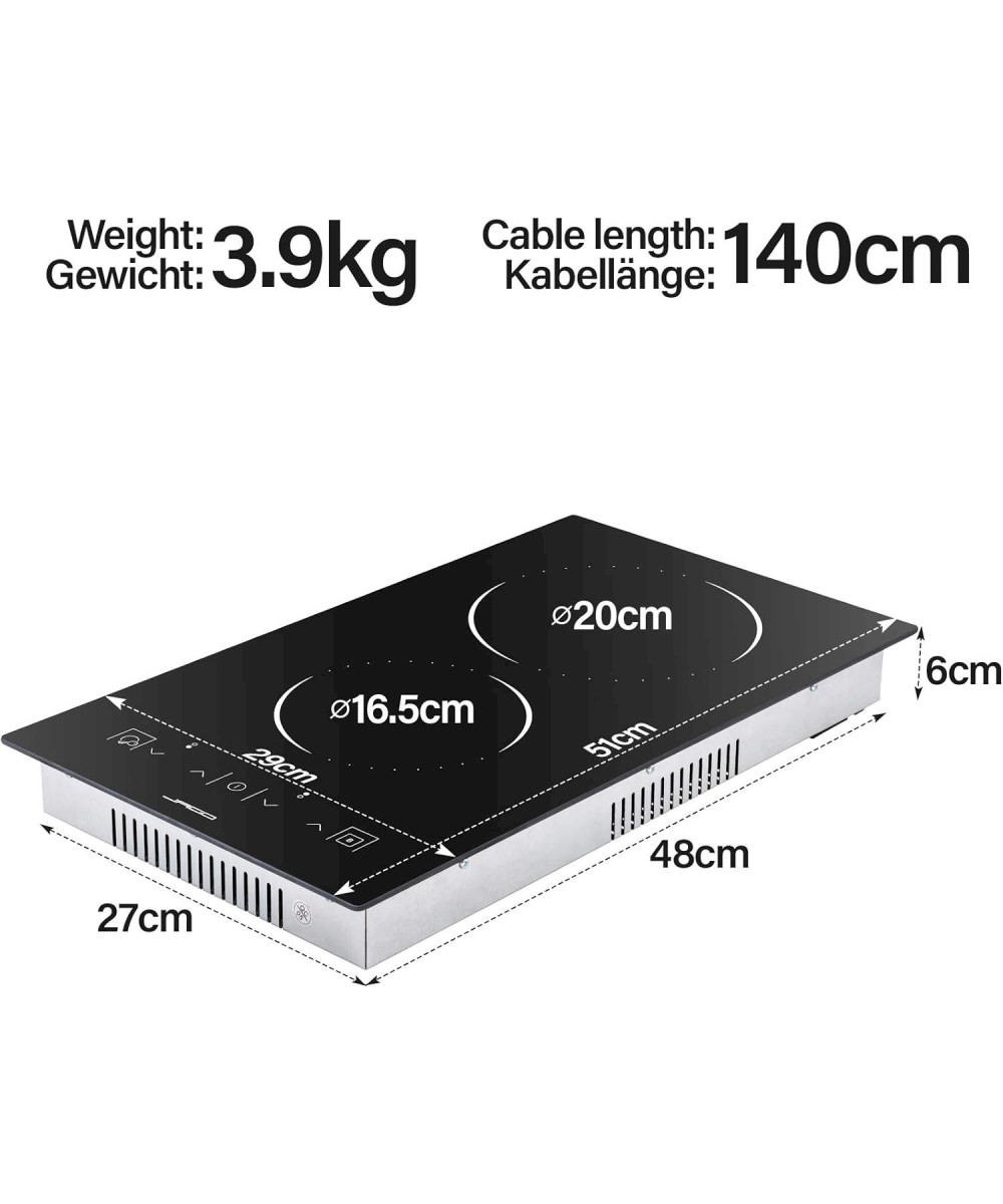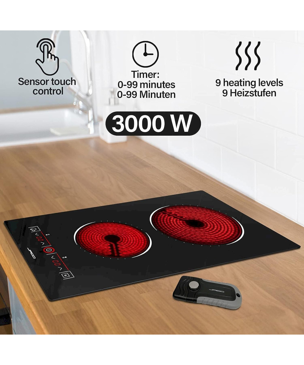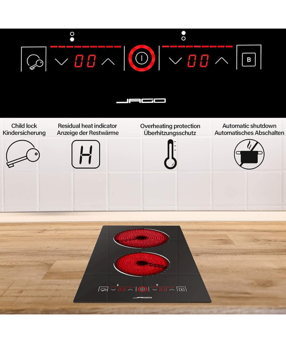 Jago table de cuisson vitrocéramique 2 foyers encastrable 230V 3000W