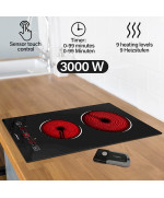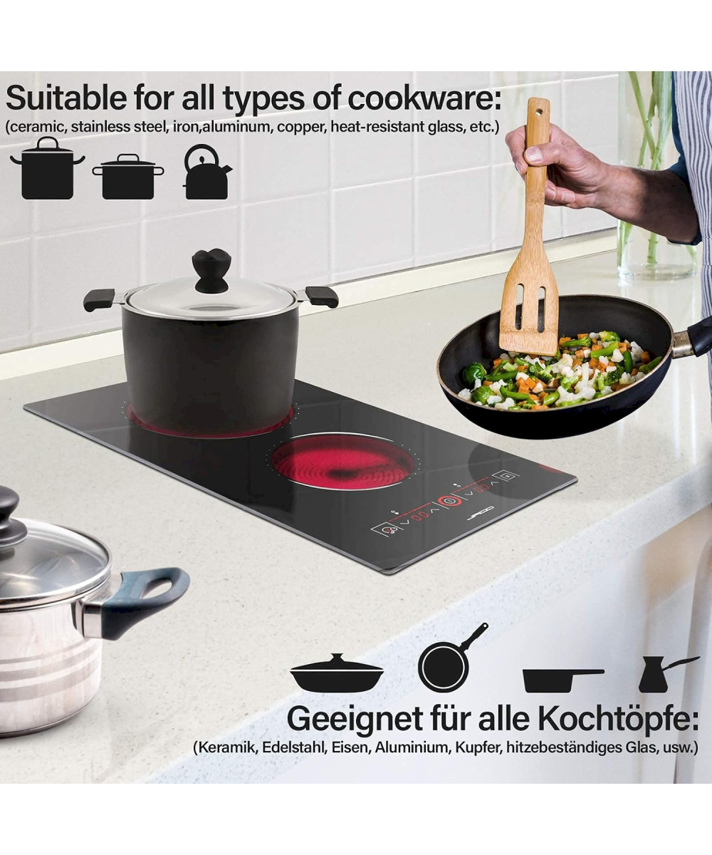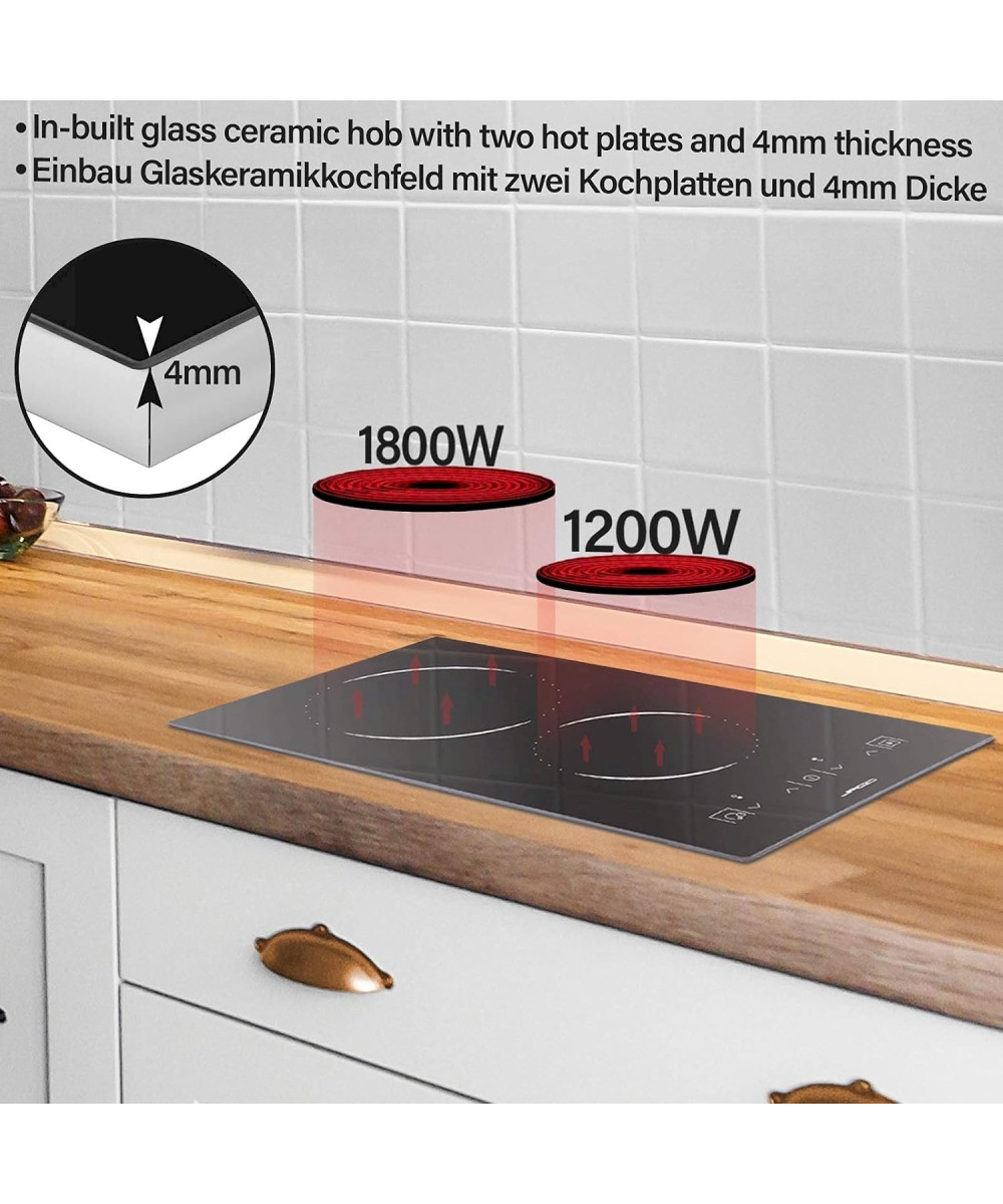 - Plaque de cuisson encastrable en vitrocéramique avec deux foyers