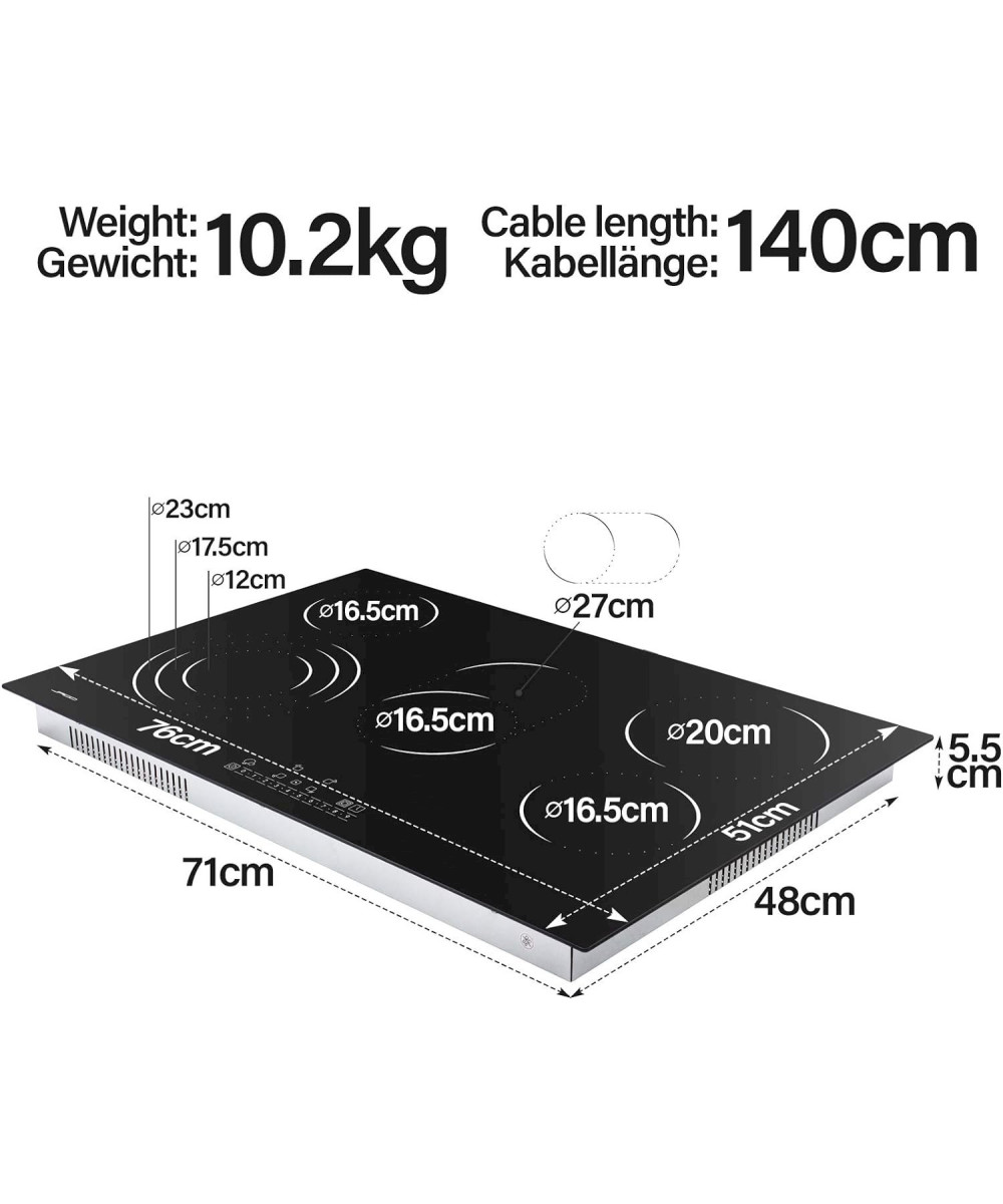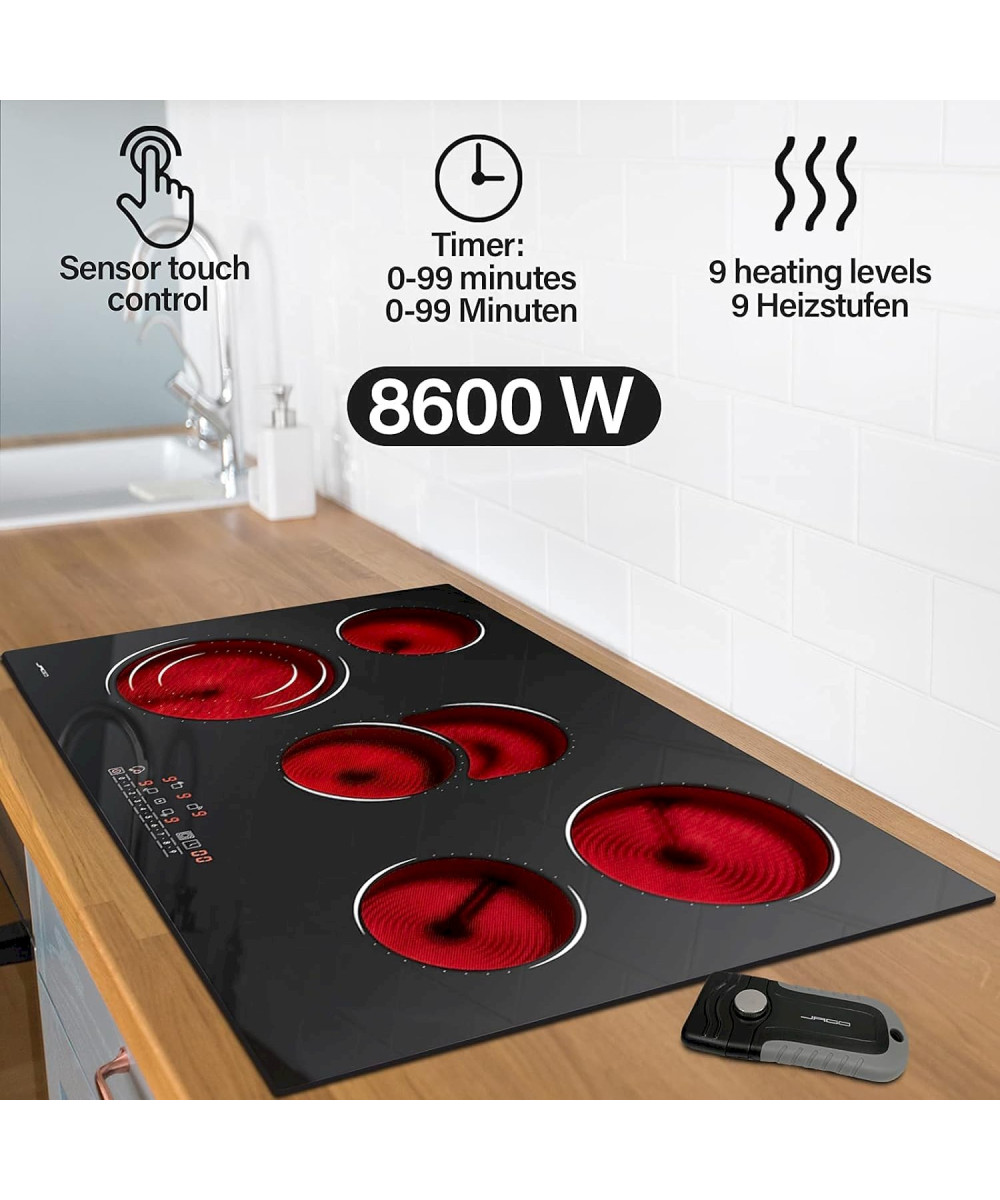Jago table de cuisson vitrocéramique 5 foyers encastrable 230/400V 8600W