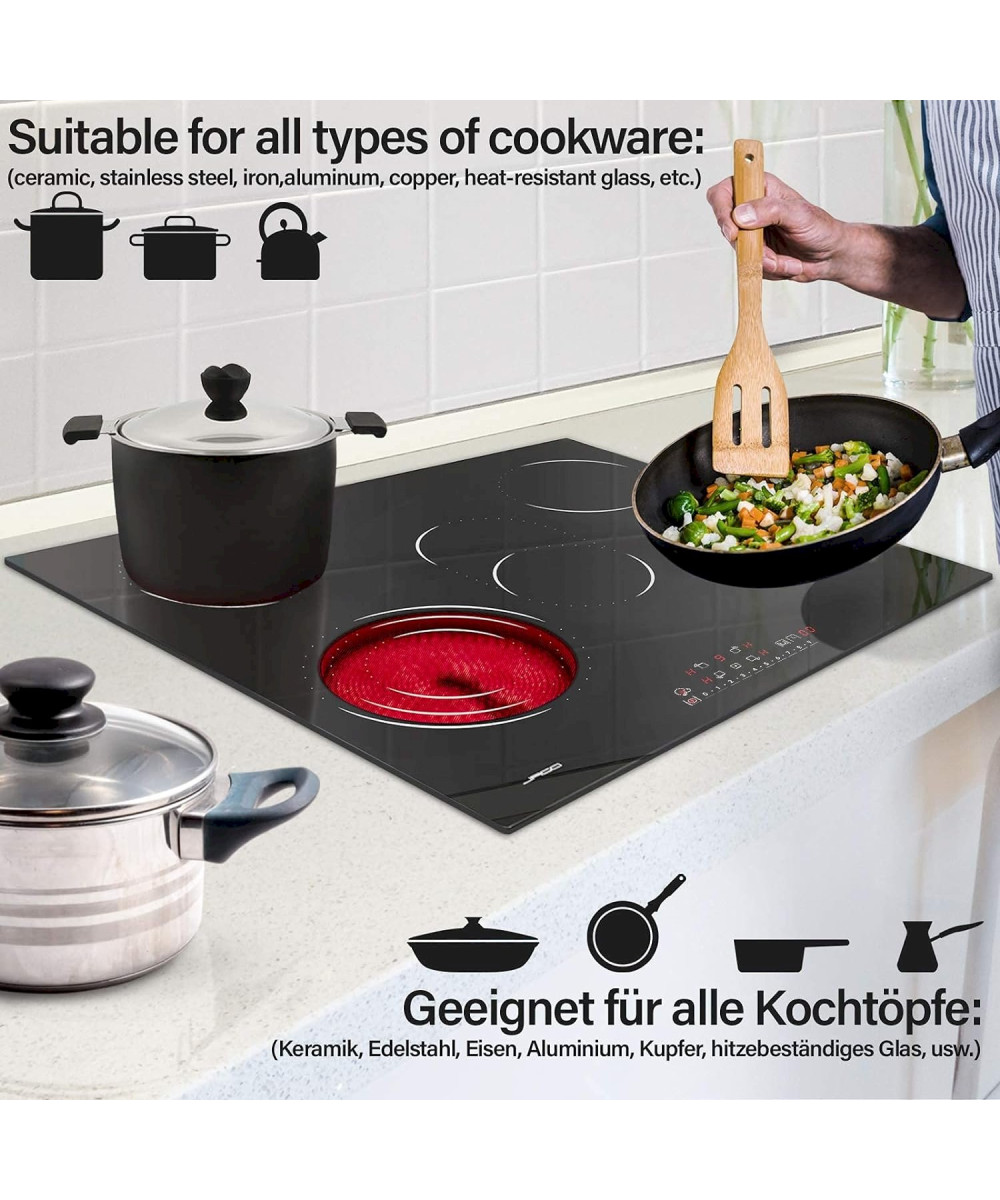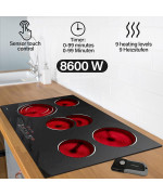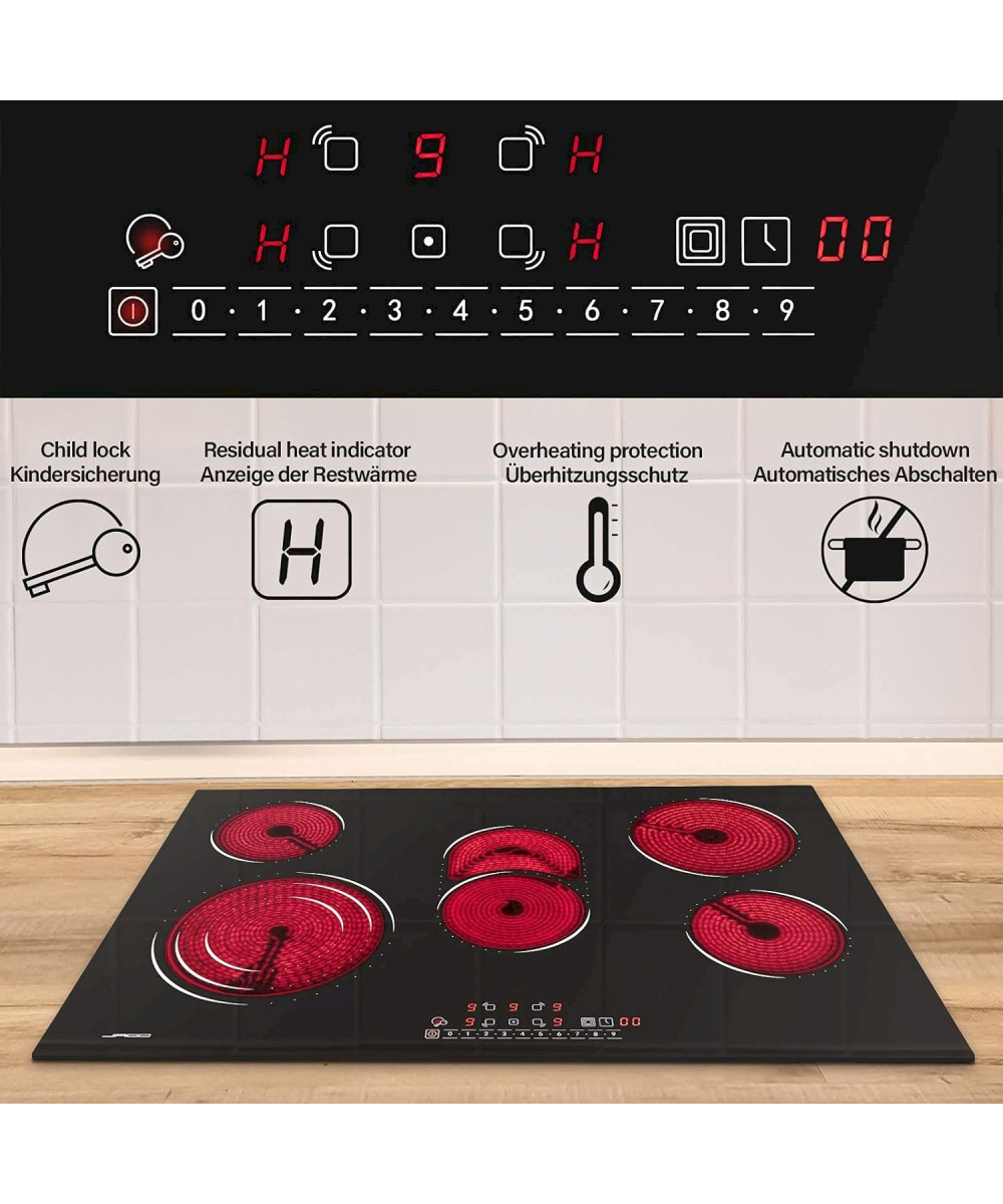 - Plaque de cuisson encastrable en vitrocéramique avec cinq foyers