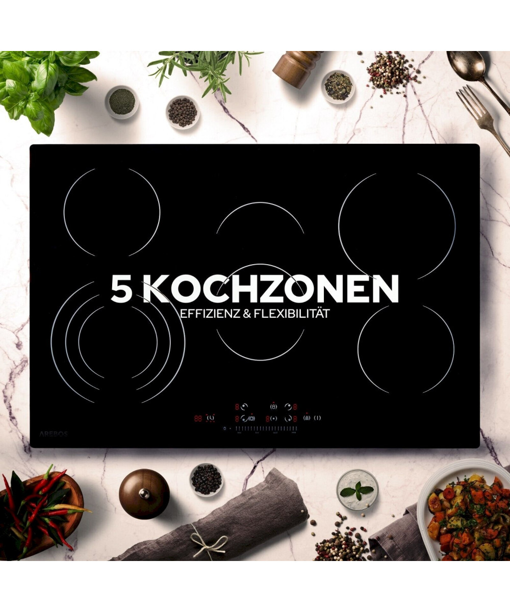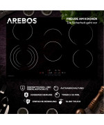 Arebos AR-HE-GK5N plaque de cuisson vitrocéramique 5 zones 8700W