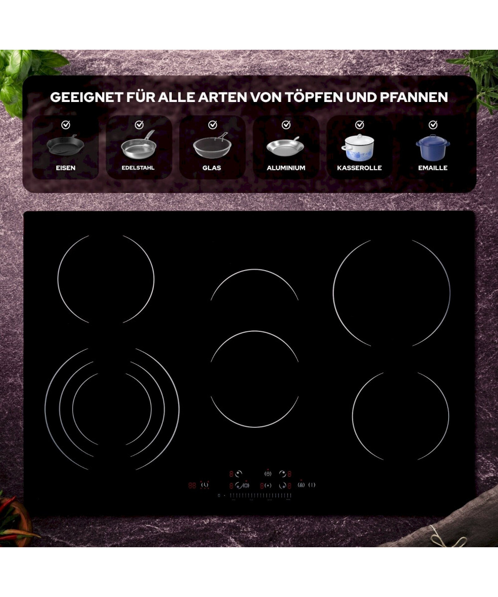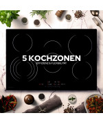 - Table de cuisson vitrocéramique moderne, autonome, 5 zones, 8700 W, puissance totale