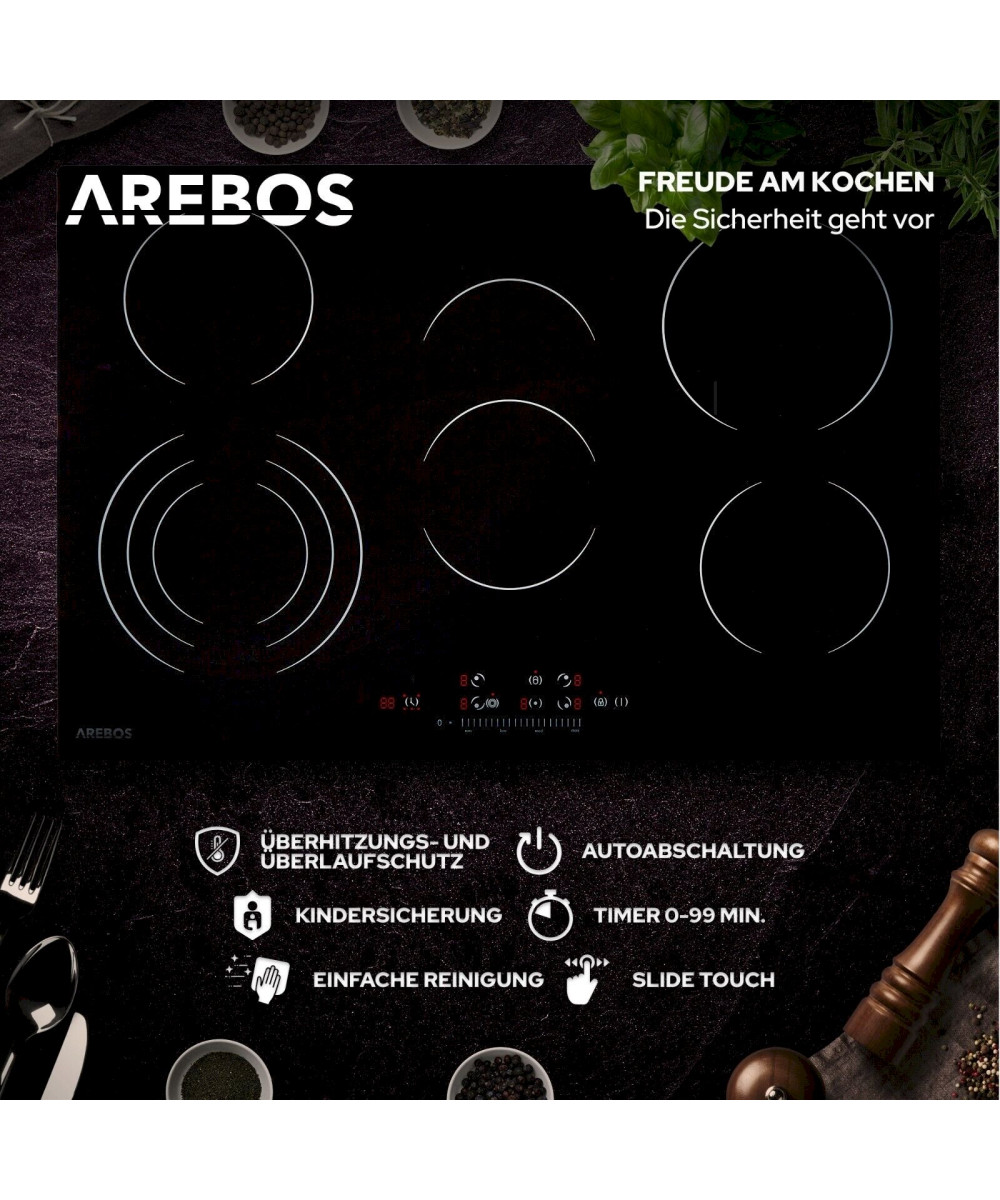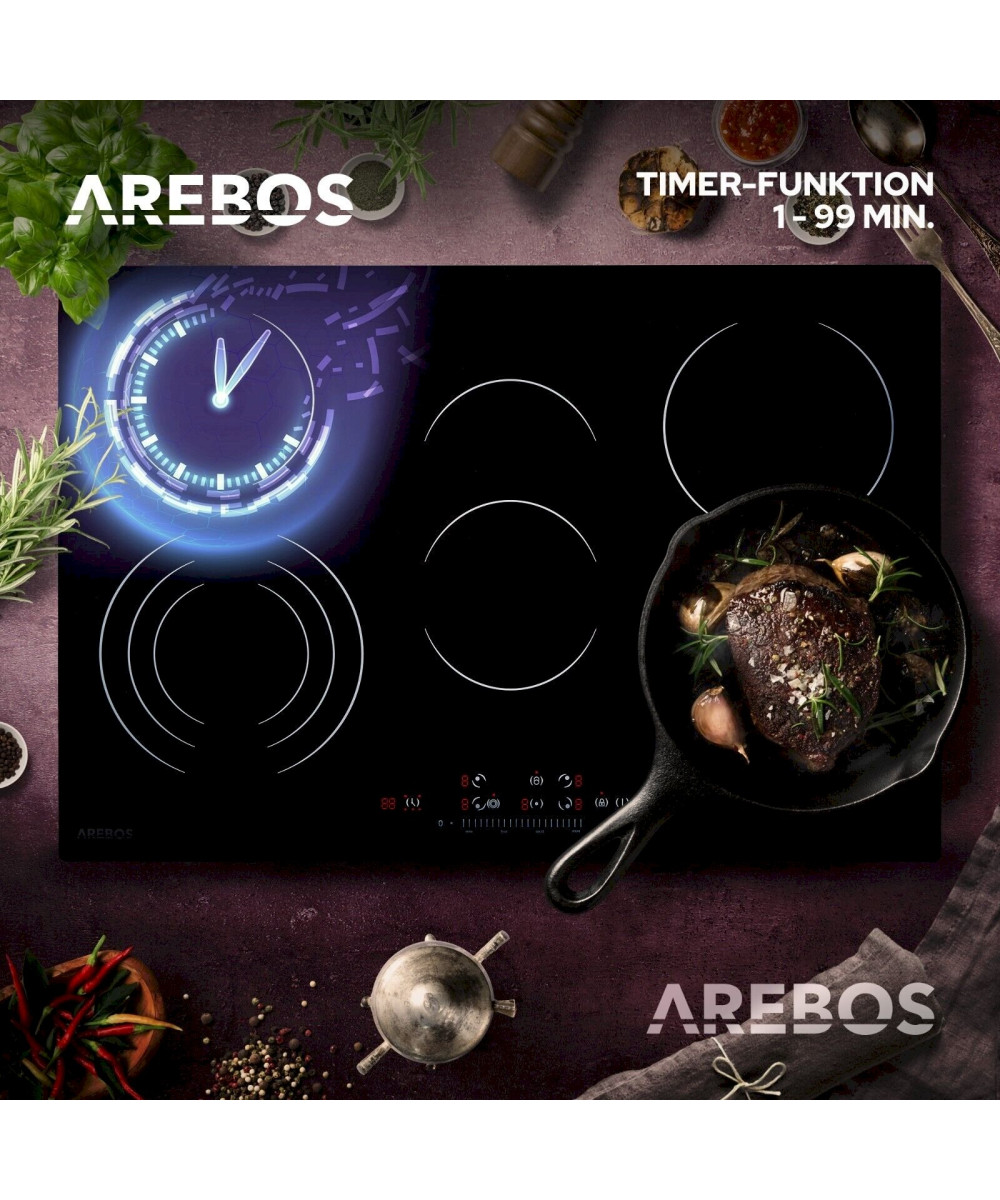 Devenez un chef cuisinier ! Avec la table de cuisson vitrocéramique AREBOS, ce n'est désormais plus un problème. Profitez des avantages de cuisiner chez vous et créez de délicieux plats pour votre famille et vos amis.