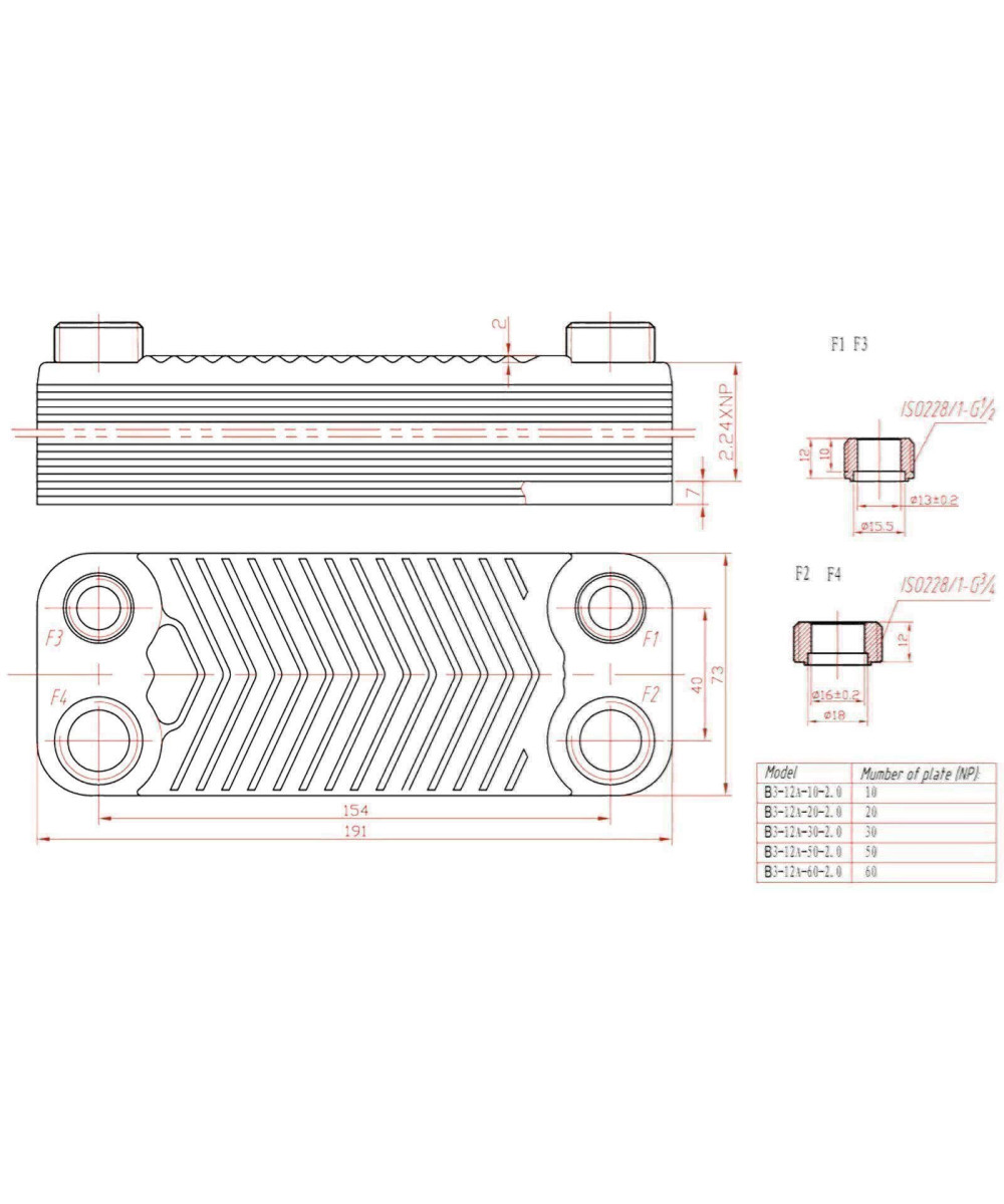 | Matériau des plaques / Matériau des raccords | Inox AISI 304 |