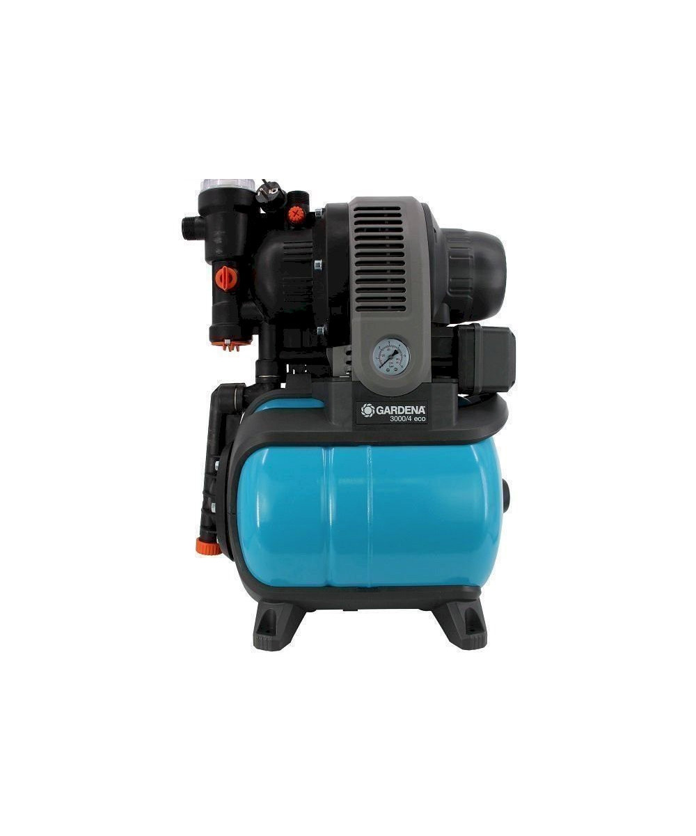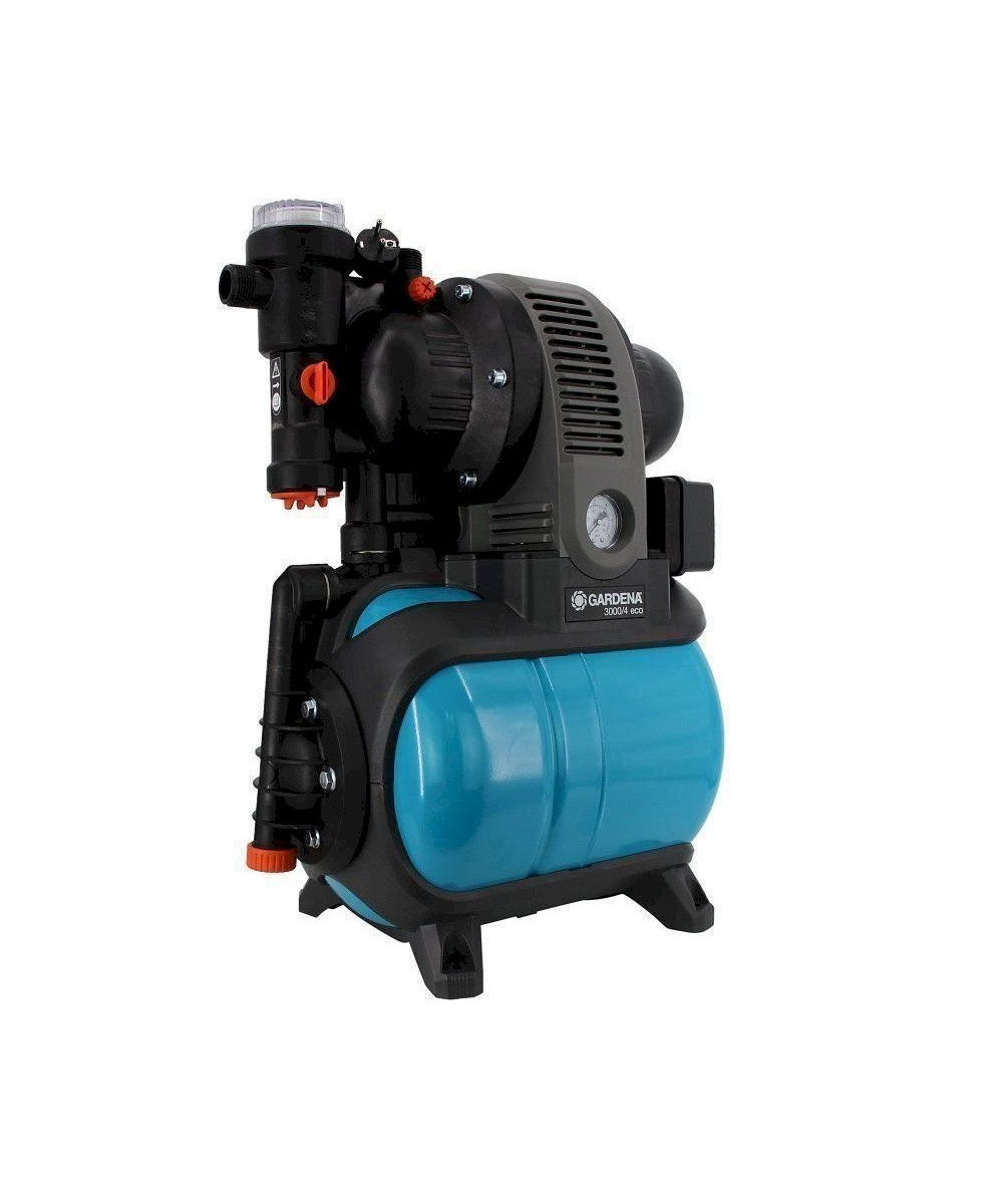 Groupe de surpression 3000/4 Eco de Gardena. Pour l'alimentation en eau domestique automatique de la maison et du jardin. Puissance de 650 W - 2800 l/h - 4 bar