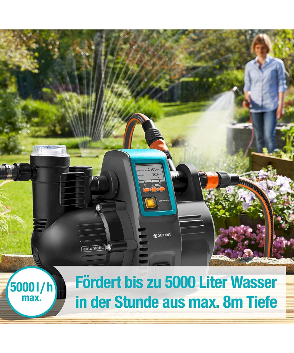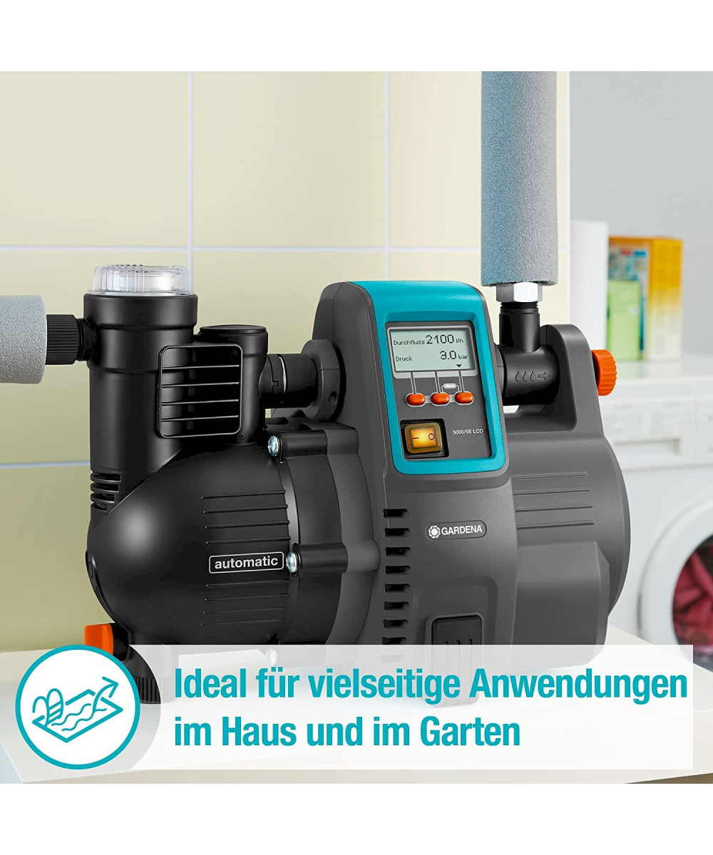La Pompe Gardena automatique 5000/5E LCD avec fonction économie d’énergie est un produit qui vous convient si vous êtes à la recherche d’une pompe de jardin pratique et fonctionnelle. La fonction innovante de protection de la pompe contre le fonctionnement à sec, garantit une grande protection et une longue durée de la pompe. Doté de fonction automatique : le pressostat électronique allume et arrête la pompe de manière automatique.