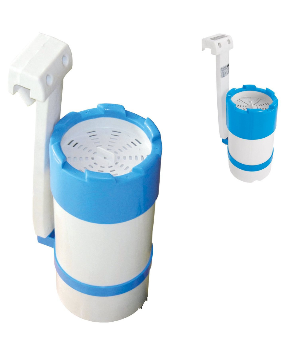Die Einhängekartuschenfilteranlage mit inegriertem Oberflächenabsauger und Einlaufdüse für alle Aufstellpools. Einfach am Handlauf zu befestigen. Die Leistung beträgt 1.700 l/h, 20 Watt, IPX8, Anschluss 230 V / 12 V mit Trafo, Kabellänge ca. 480 cm. Das passende Filtermedium für Ihre einhänge Kartuschenfilteranlage ist die Filterkartusche Typ E (Art.-Nr.: 060225). Die Filteranlage kann bis zu einer maximalen Wassertemperatur von 35 °C eingesetzt werden und ist salzwassergeeignet bis zu einem Salzgehalt von 5 g/l.