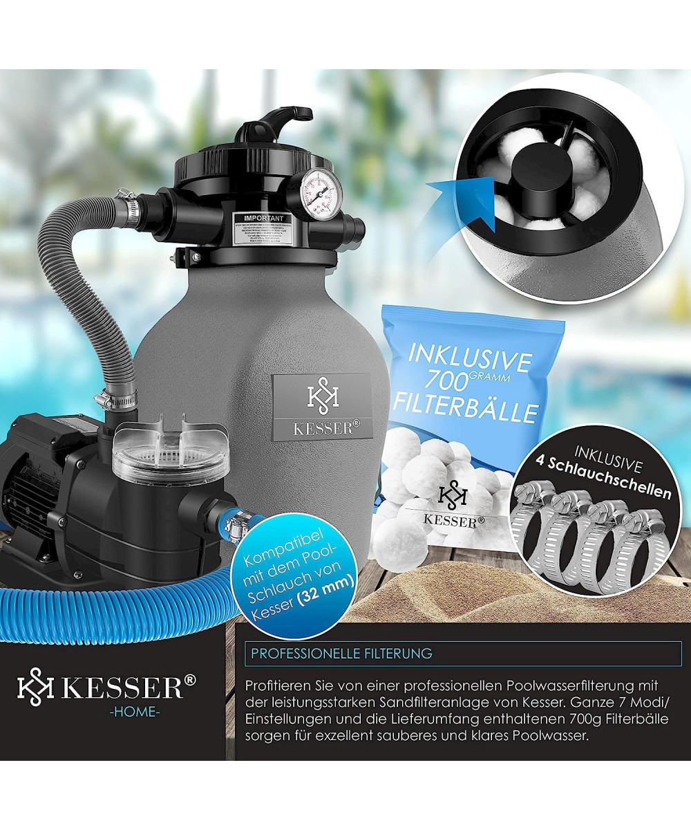 - Compatibilité du tuyau : 32mm (Compatible avec le tuyau de piscine de KESSER)