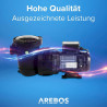 Grâce au moteur puissant, le fonctionnement est efficace et silencieux. Le couvercle d'étanchéité transparent et visible peut être ouvert sans aucun outil, ce qui facilite le retrait et le nettoyage facile du panier-préfiltre intégré. En dehors de cela, la pompe avec filtration d’AREBOS ne nécessite aucun entretien. Il suffit de le nettoyer régulièrement en le rinçant à l'eau claire et en vidant le bac de récupération des saletés.