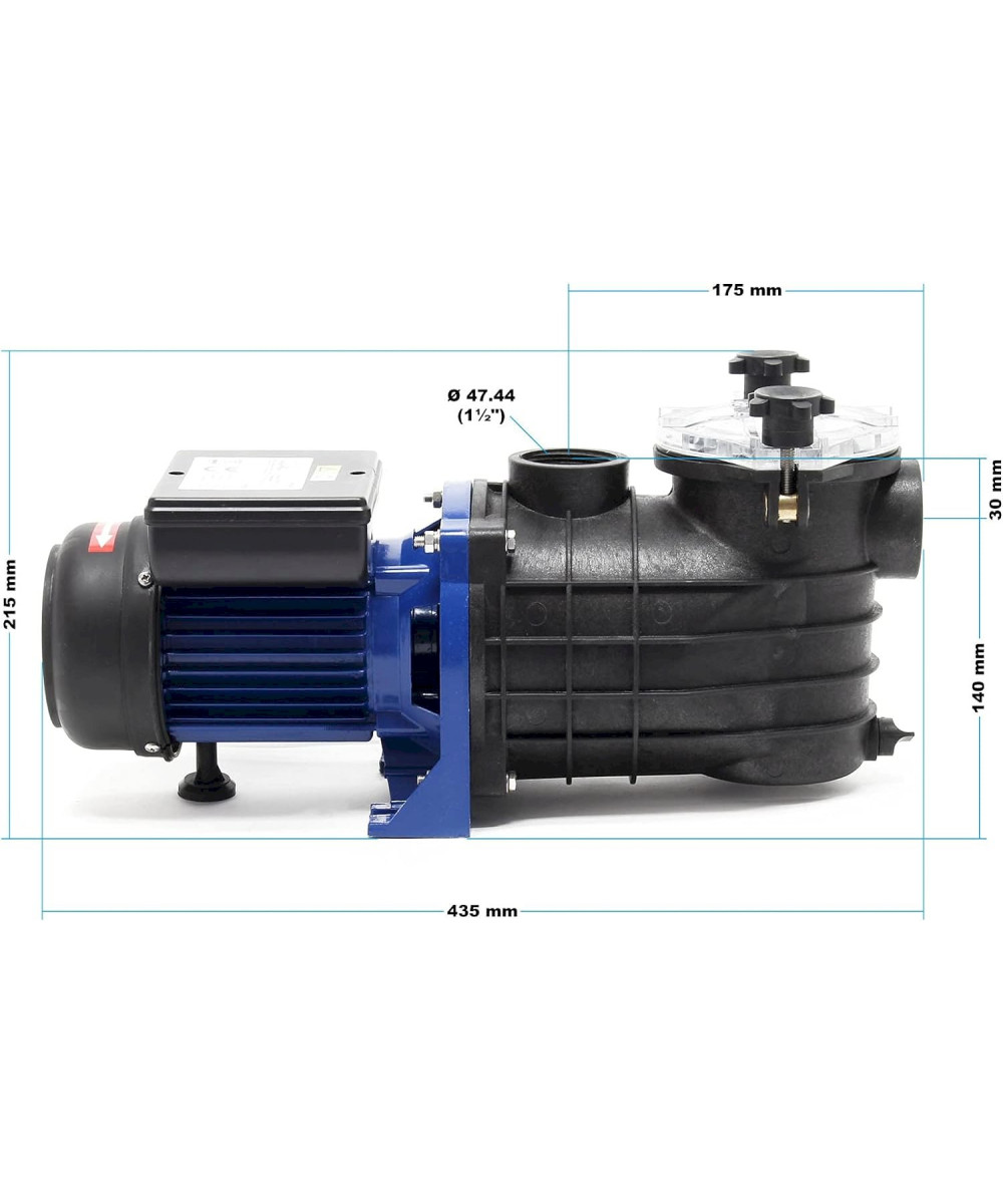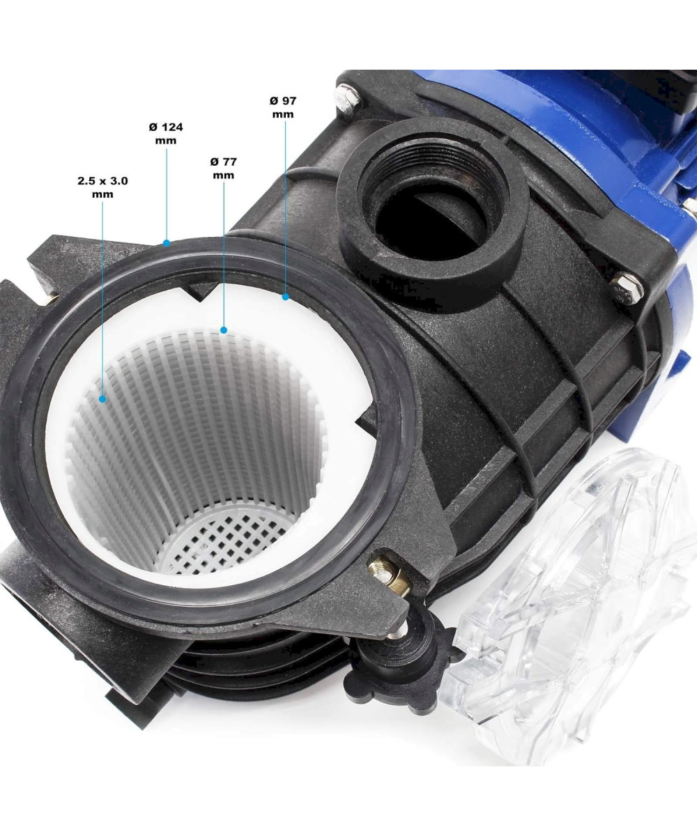 Garder l'eau de sa piscine filtrée et propre est le but de chaque propriétaire. Les équipements de filtration sont nécessaires pour réaliser ce rêve. La pompe de piscine contribue à maintenir l‘eau de votre bassin belle et limpide, pour que vous puissiez y savourer des grands moments de bonheur, de détente et fraîcheur. La pompe, considérée comme l‘élément le plus important du système de filtration, garantit le traitement mécanique de l‘eau. Grâce à son puissant moteur de 250 watts, la pompe fonctionne efficacement et en même temps très silencieusement. Cette pompe s‘installe directement devant la cuve filtrante et aspire 195 litres par minute au sein du système de filtrage, où l‘eau se filtre et se déverse par la suite dans la piscine. Ce procédé empêche la propagation des algues et l'accumulation des germes de piscine. La hauteur de refoulement maximale de la pompe est de 9 mètres.