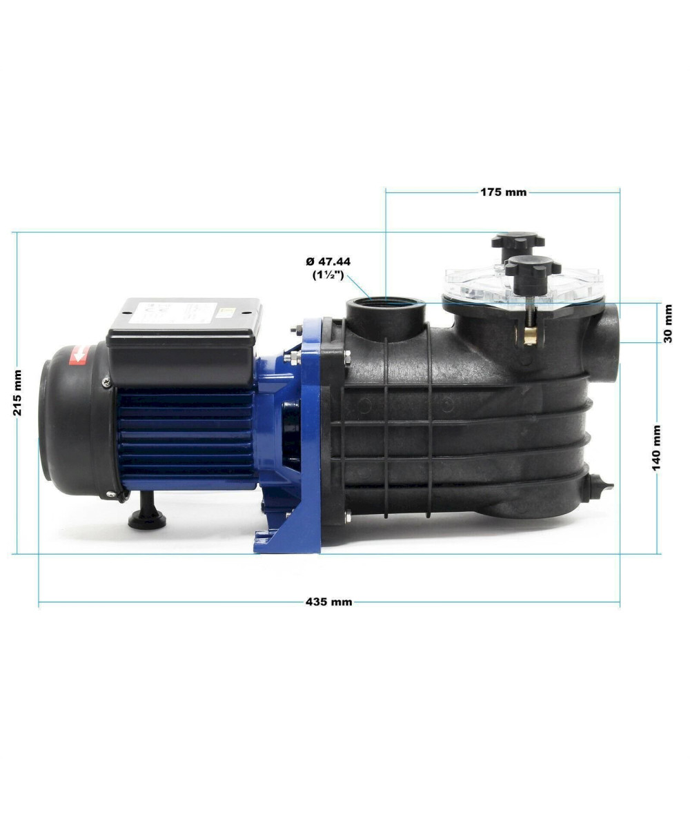 Garder l'eau de sa piscine filtrée et propre est le but de chaque propriétaire. Les équipements de filtration sont nécessaires pour réaliser ce rêve. La pompe de piscine contribue à maintenir l‘eau de votre bassin belle et limpide, pour que vous puissiez y savourer des grands moments de bonheur, de détente et fraîcheur. La pompe, considérée comme l‘élément le plus important du système de filtration, garantit le traitement mécanique de l‘eau. Grâce à son puissant moteur de 370 watts, la pompe fonctionne efficacement et en même temps très silencieusement. Cette pompe s‘installe directement devant la cuve filtrante et aspire 220 litres par minute au sein du système de filtrage, où l‘eau se filtre et se déverse par la suite dans la piscine. Ce procédé empêche la propagation des algues et l'accumulation des germes de piscine. La hauteur de refoulement maximale de la pompe est de 11 mètres.