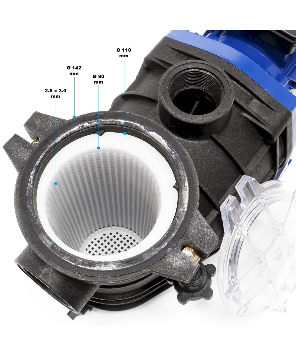 Garder l'eau de sa piscine filtrée et propre est le but de chaque propriétaire. Les équipements de filtration sont nécessaires pour réaliser ce rêve. La pompe de piscine contribue à maintenir l‘eau de votre bassin belle et limpide, pour que vous puissiez y savourer des grands moments de bonheur, de détente et fraîcheur. La pompe, considérée comme l‘élément le plus important du système de filtration, garantit le traitement mécanique de l‘eau. Grâce à son puissant moteur de 550 watts, la pompe fonctionne efficacement et en même temps très silencieusement. Cette pompe s‘installe directement devant la cuve filtrante et aspire 230 litres par minute au sein du système de filtrage, où l‘eau se filtre et se déverse par la suite dans la piscine. Ce procédé empêche la propagation des algues et l'accumulation des germes de piscine. La hauteur de refoulement maximale de la pompe est de 12 mètres.