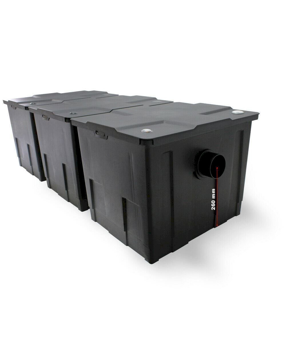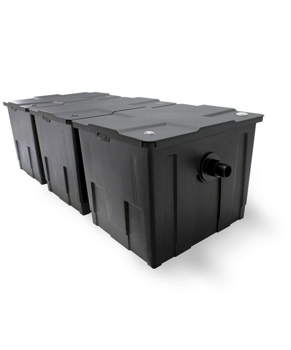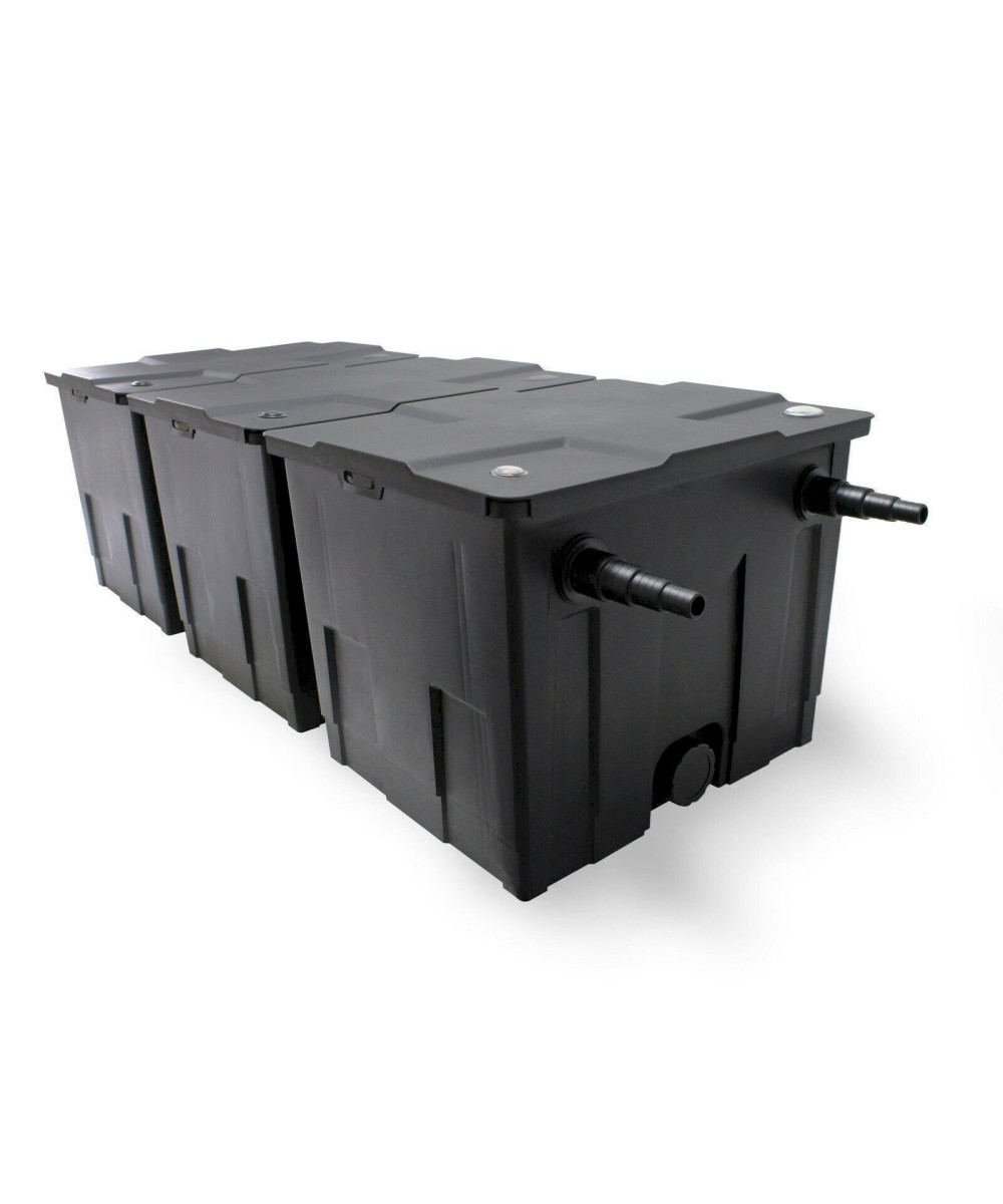 Notre filtre de bassin à chambres biologique convient aux bassins de jardin jusqu'à 90000 litres.