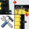 o Les matériaux de filtration peuvent être pressés grâce à un système coulissant.