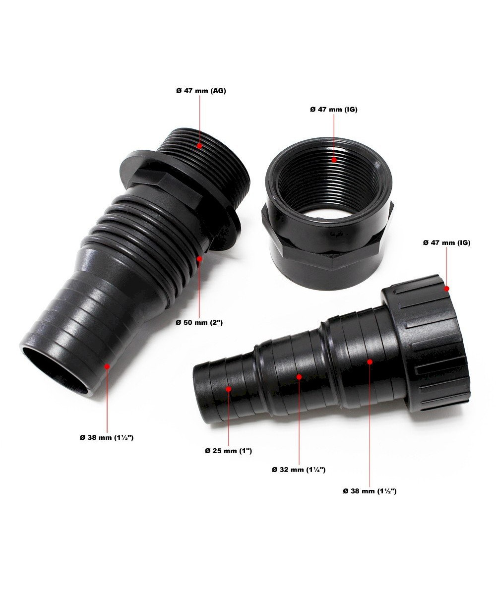 Afin d'éviter un débordement de votre filtre de bassin si vous l'utilisez avec ces pompes puissantes, nous vous recommandons l'emploi d'un raccord en Y. Employé comme by-pass, vous pouvez également alimenter un cours d'eau ou répartir la puissance sur un UVC ou filtre de bassin supplémentaire.