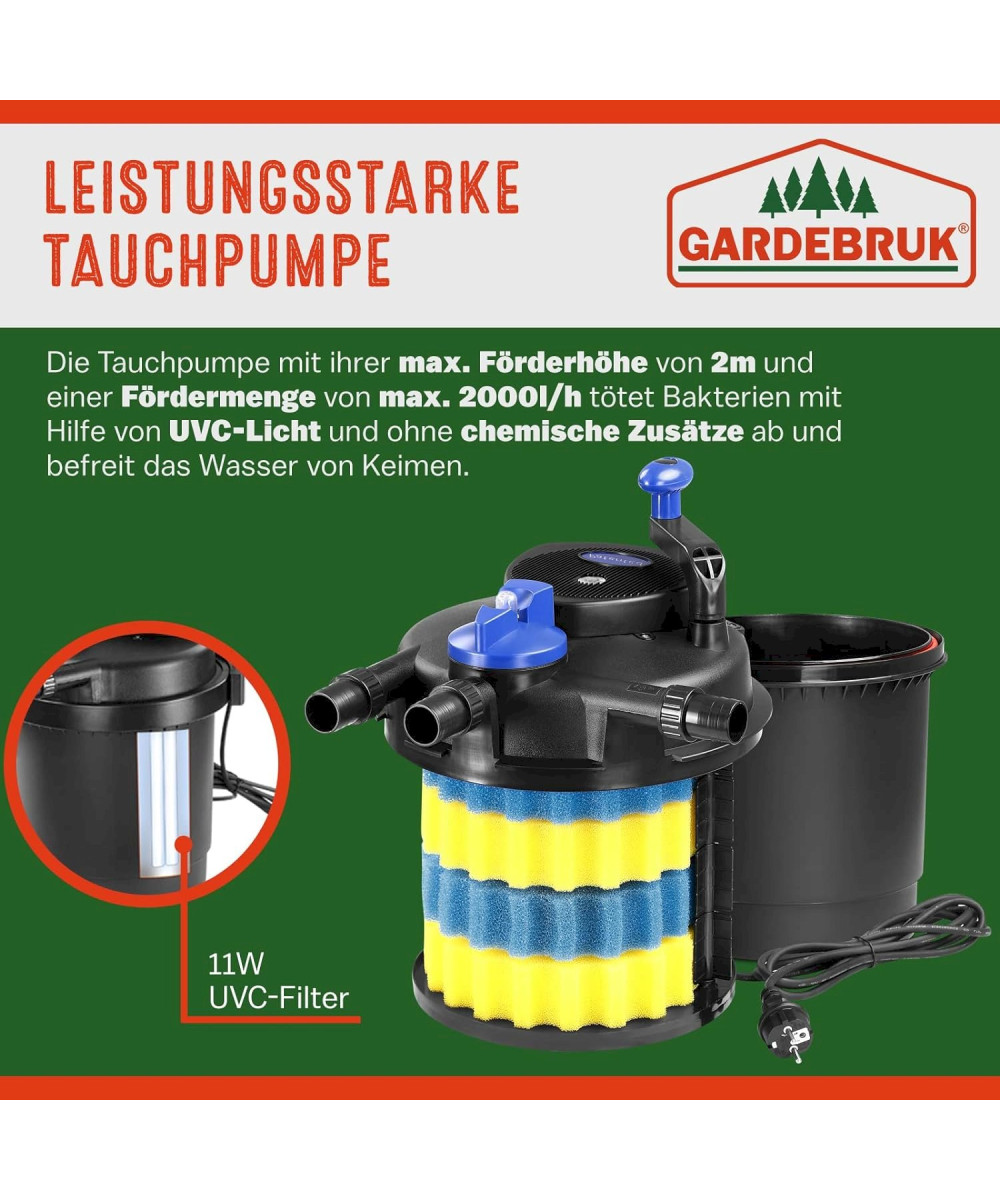 GARDEBRUK Pompe filtre à pression set complet 2000L/h
