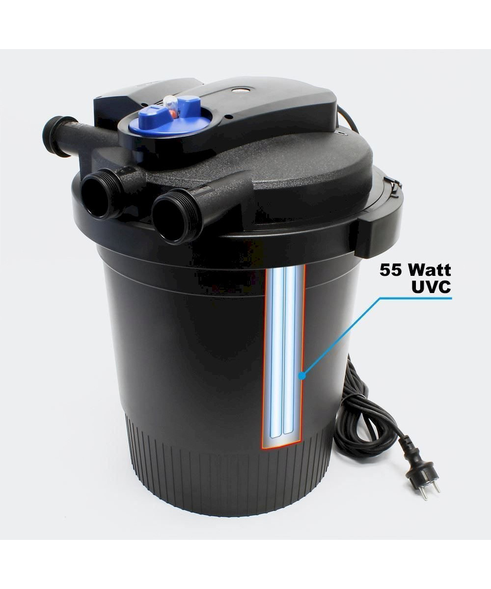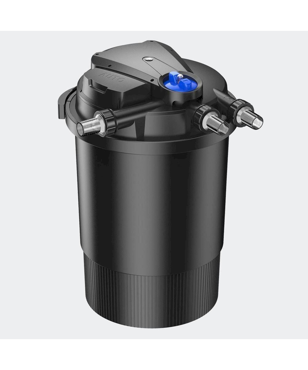 Il s’agit d’un filtre de bassin à pression biologique qui fonctionne mécaniquement et biologiquement avec un stérilisateur de bassin UVC intégré. Tous les raccords et la technologie se trouvent dans le couvercle, le filtre de bassin peut être ainsi enterré en toute sécurité.