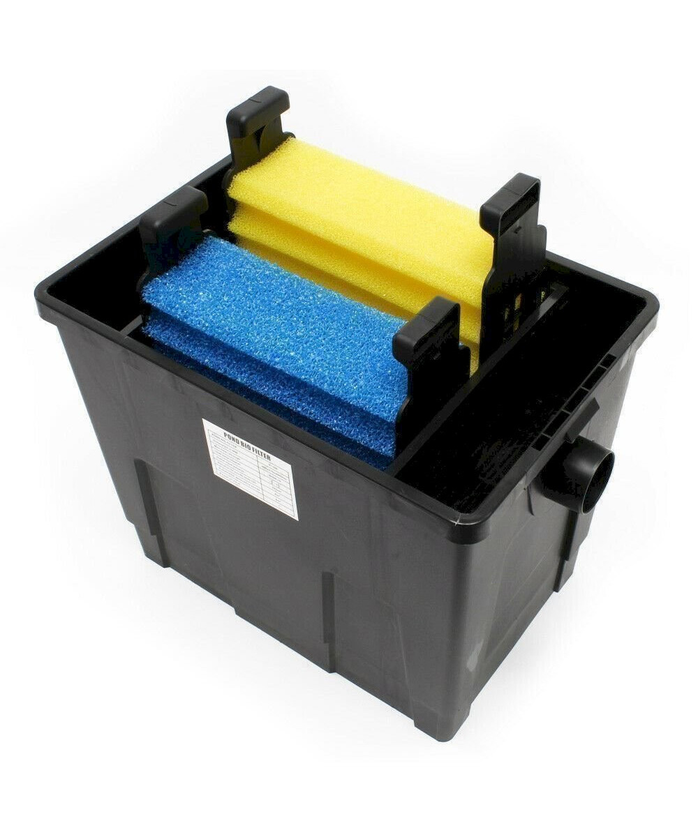 L’efficacité de la filtration est atteinte grâce à des matériaux de filtration tels que des boules biologiques , des éponges bleues et jaunes spéciales avec différentes vitesse d’écoulement et un stérilisateur UVC, munie d’une lampe UVC incorporée, grâce à laquelle les algues sont éliminées de l’eau.