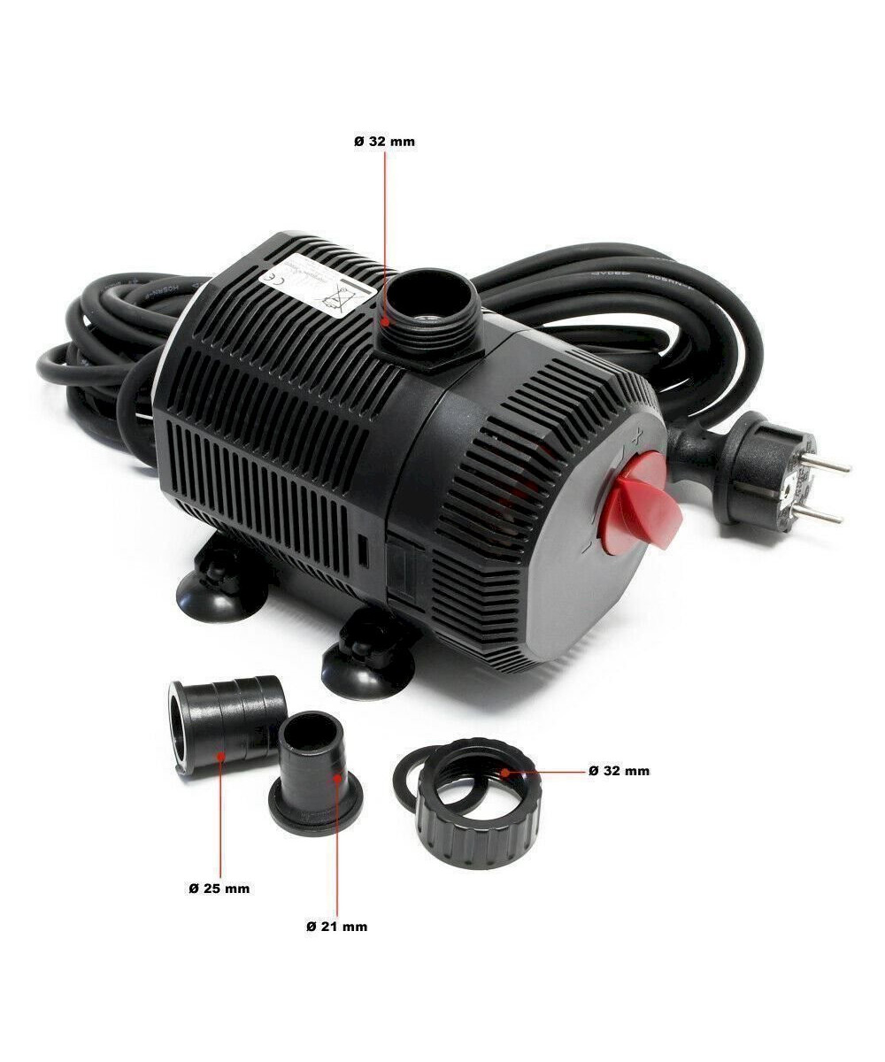 | Application / Information / Caractéristiques | Spécifications CQB-2000 Pompe de bassin 230V ~ 50Hz 35W consommation d'énergie Hauteur de refoulement max.en m 2 m Capacité 2300 l / h Raccord de tuyau 20 mm / 25 mm (3/4 et 1 pouce) Longueur de câble de 2,5 m |