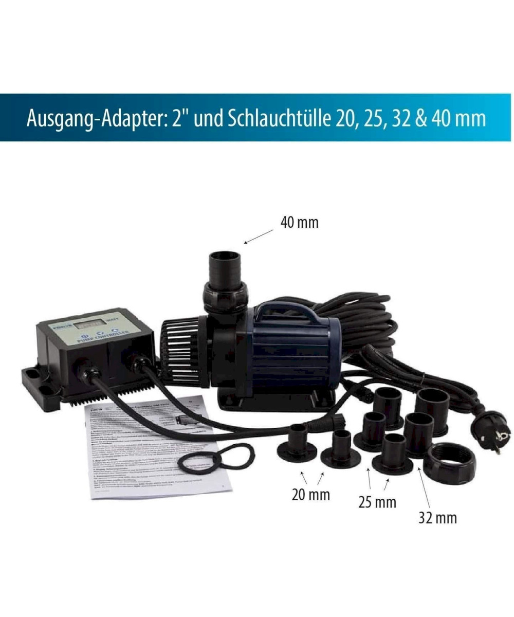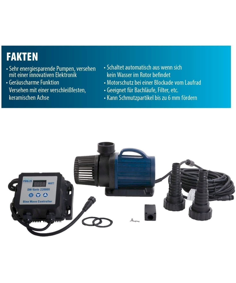 La nouvelle série de pompes réglables à un prix très intéressant. Le DM-Vario S est le successeur de la série DM-Vario qui est fabriquée pour une utilisation en extérieur et peut être placé à sec ou humide. Grâce au contrôleur externe, vous pouvez régler le débit (et donc la consommation électrique) de 30 % à 100 % de puissance. La pompe peut également être éteinte au moyen du contrôleur (bouton de pause). Cette pompe a un moteur synchrone et est équipée d'un arbre en céramique résistant à l'usure. La pompe s'éteint automatiquement si l'eau n'est pas suffisante dans le rotor. En cas de blocage de l’impellateur, la pompe se met automatiquement en position « Lock ». Il ne consomme alors plus d'électricité. La pompe attend jusqu'à ce que le blocage ait été corrigé. Cela évite une surchauffe du moteur.