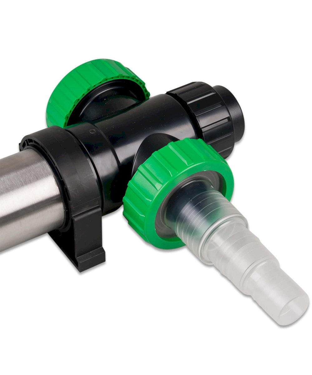 Die Wagner GREEN Flex UV-C hat an allen vier Seiten einen Ein- bzw. Auslass für das Wasser, so dass Sie das UV-C Gerät praktisch auf jede erdenkliche Weise in Ihrem Leistungssystem anbringen können.