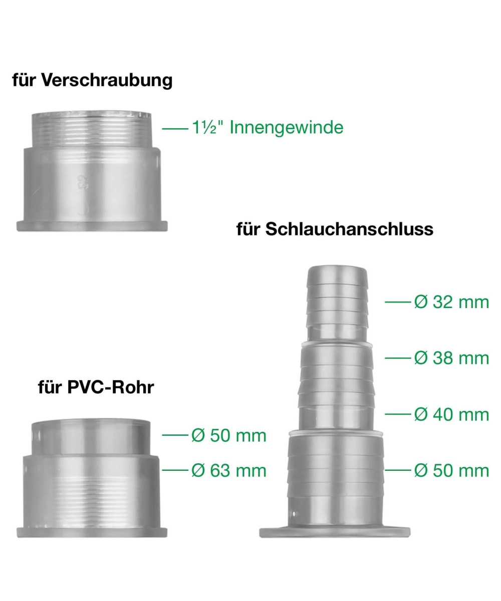 - Für Schlauchanschluss Ø 32, 38, 40, 50 mm