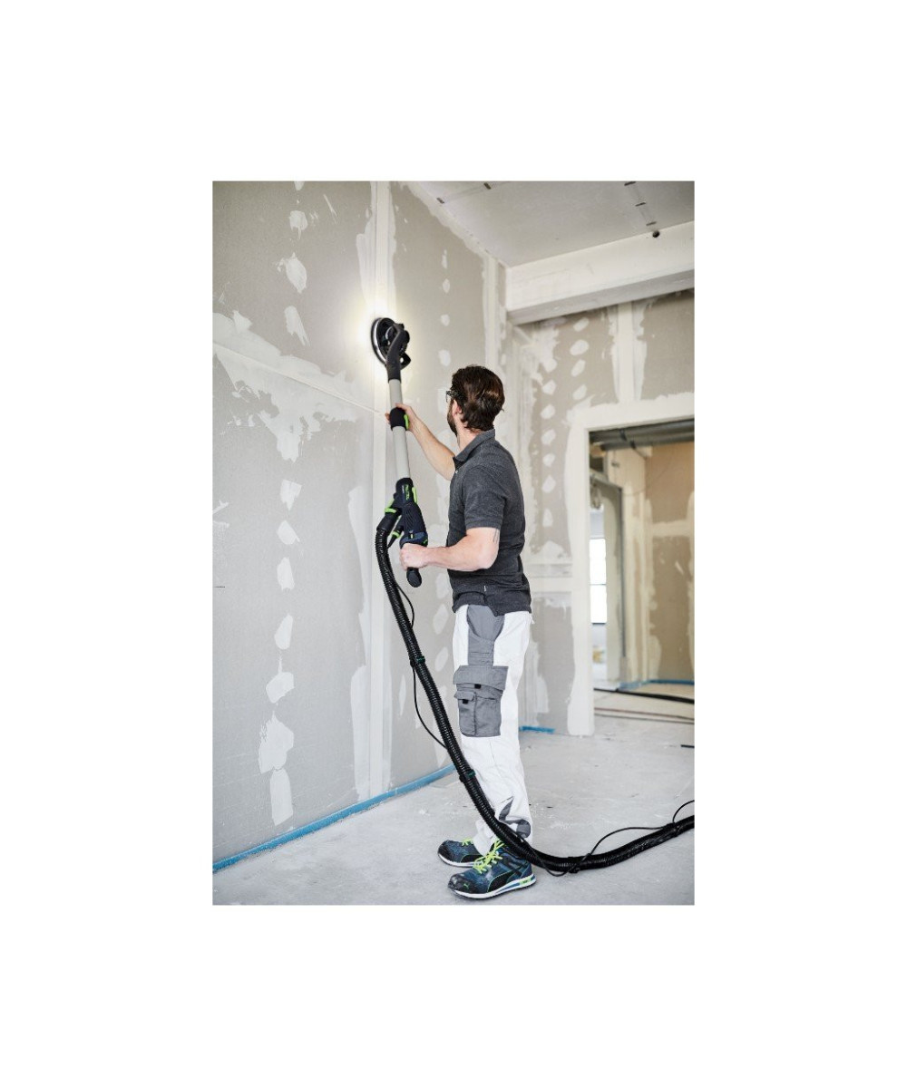 La nouvelle génération de ponceuse à bras PLANEX révolutionne le ponçage de cloisons sèches, avec une lumière à LED et le mouvement excentrique. L'éclairage LED sur le pourtour de la machine fonctionne comme une lampe rasante intégrée qui permet de mieux visualiser les aspérités pendant le ponçage. Le mouvement de ponçage excentrique permet d'obtenir une excellente qualité de surface, sans retouche fastidieuse. L'aspiration régulable, la longueur variable de travail et la poignée en forme de T, garantissent un travail ergonomique au mur et au plafond ; de plus, le guidage est facile même en cas d'utilisation prolongée.