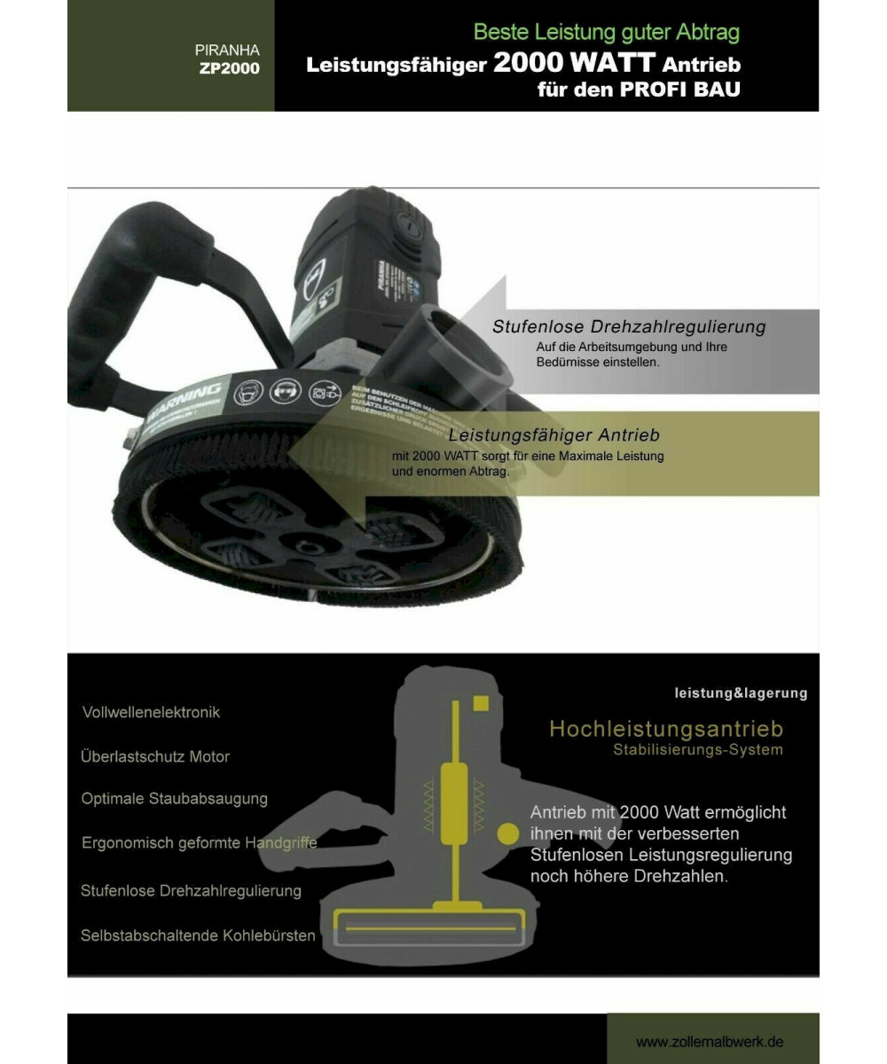 Zollernalb Piranha ZP2000 fraiseuse de rénovation meuleuse à béton fraise 140mm et tasse de meulage 125mm