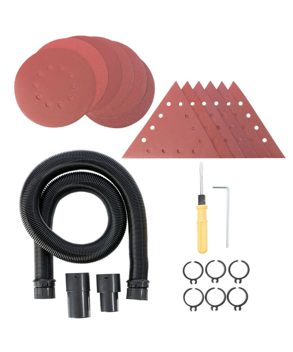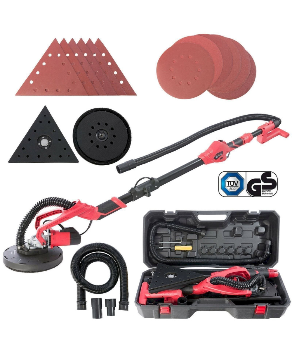 - Livraison: 1x ponceuse à long manche, 12 meules rondes et triangulaires (80, 100, 120, 150, 180, 240), 2x brosses à charbon, 1x double tournevis (fente croisée et fente), 1x tuyau d'aspiration, 1x boite à transport