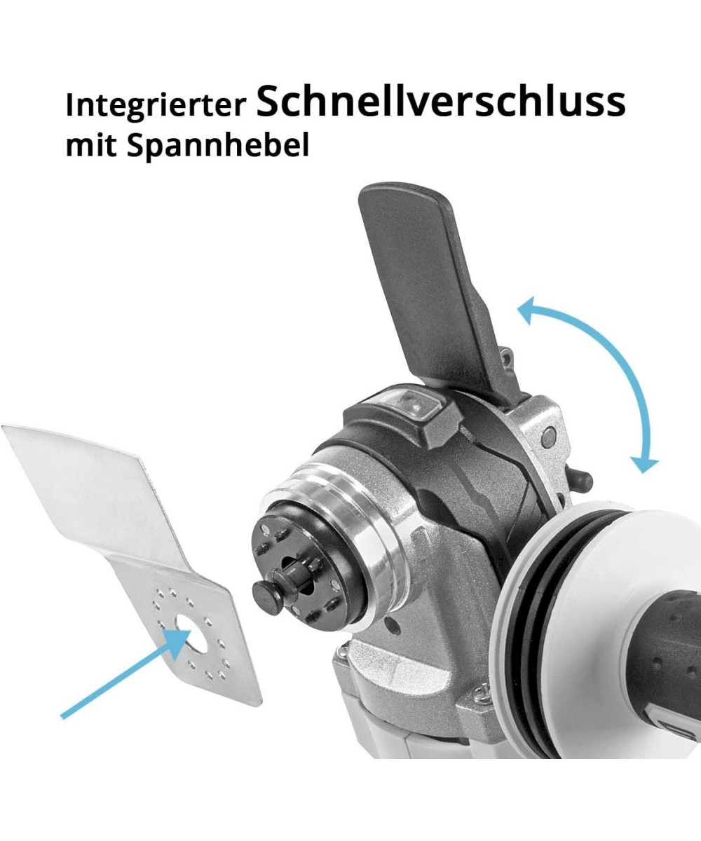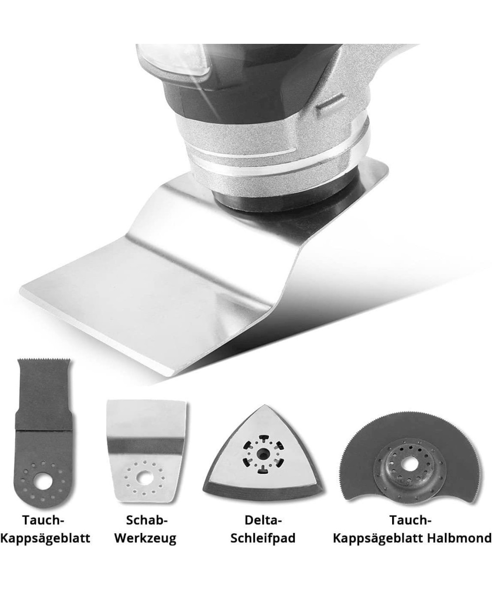 - Le démarrage en douceur du multitool permet une mise en place précise sur la pièce à travailler, le moteur silencieux assure un résultat parfait.