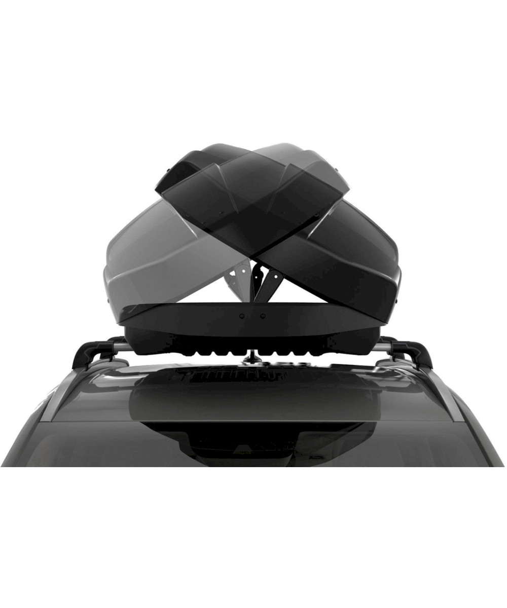 Ce coffre très fonctionnel vous permettra de transporter jusqu'à 75kg de bagage. Il est équipé d'un système d' ouverture bilatérale ; cela simplifie non seulement le chargement et l'accès à la charge mais également le montage du coffre de toit.